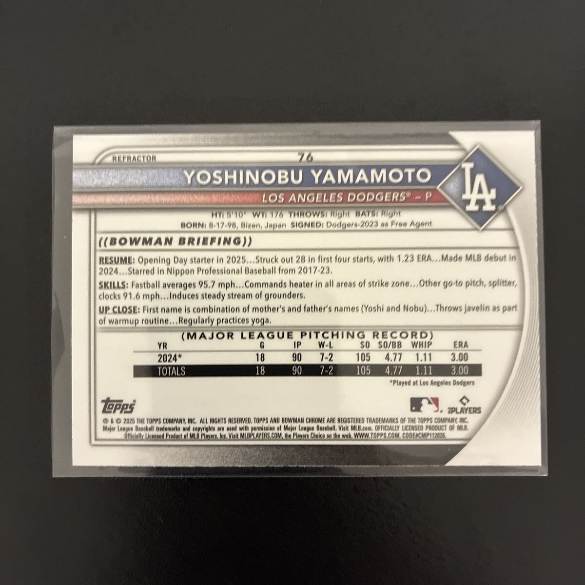 商品名 : 【メジャー初完投】【シリアルあり】山本由伸 Topps Bowman Chrome 19/499 ロサンゼルス ドジャース Yoshinobu Yamamoto 山本 由伸