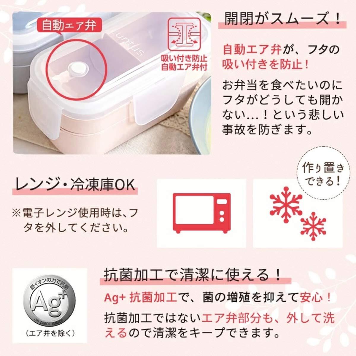 ●パッキン一体型だからお手入れ簡単。透明な立体フタとやさしい本体カラーのシンプルなデザイン ●2段形状で、かさばらないからないサイズ感 ●4点ロックで汁モレも安心 ●仕切りが動いて盛り付けがしやすい ●Ag+抗菌でらくらく清潔キープ。 ●全てのパーツが食洗器対応です。パッキン、エア弁も外して洗えます。 ●冷凍庫・電子レンジOK※電子レンジ使用時はフタを外してください