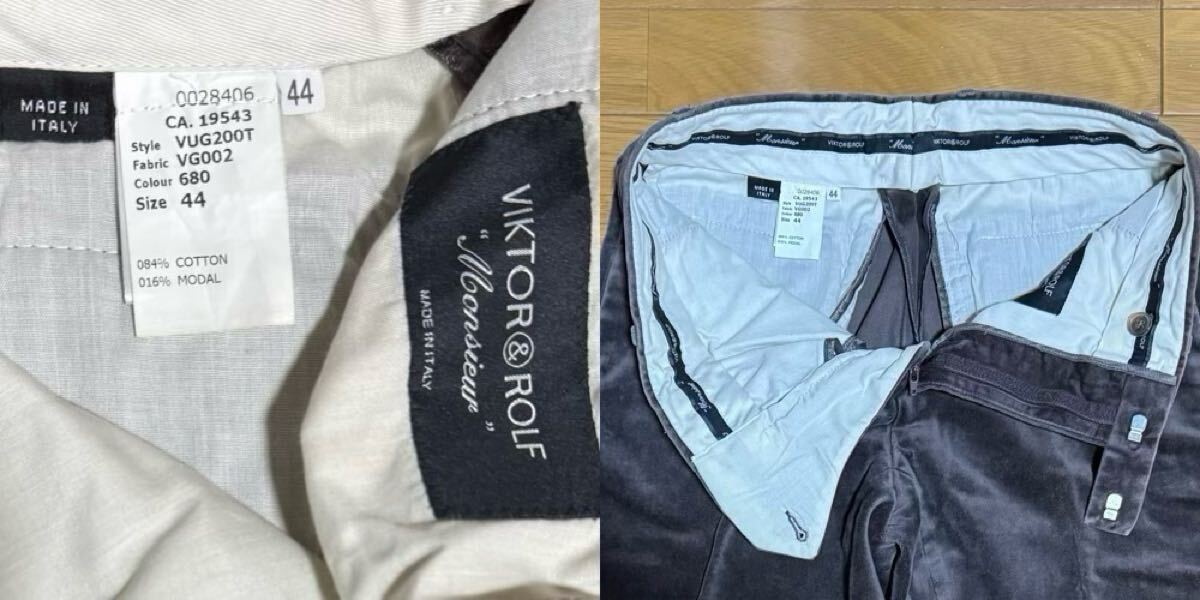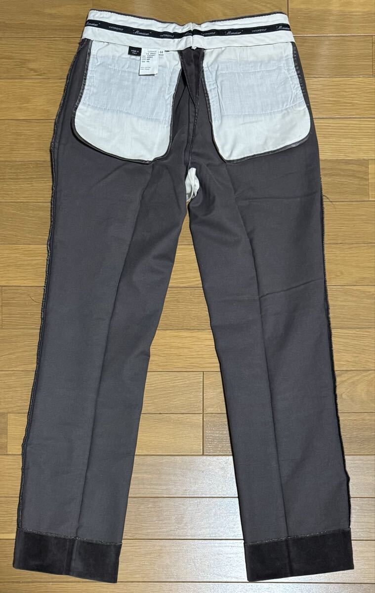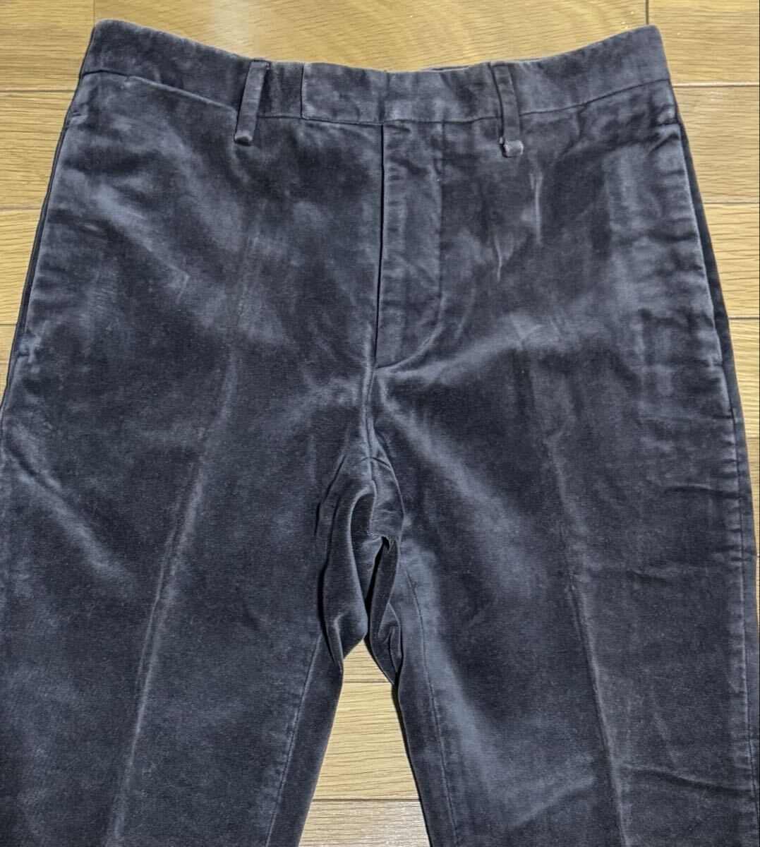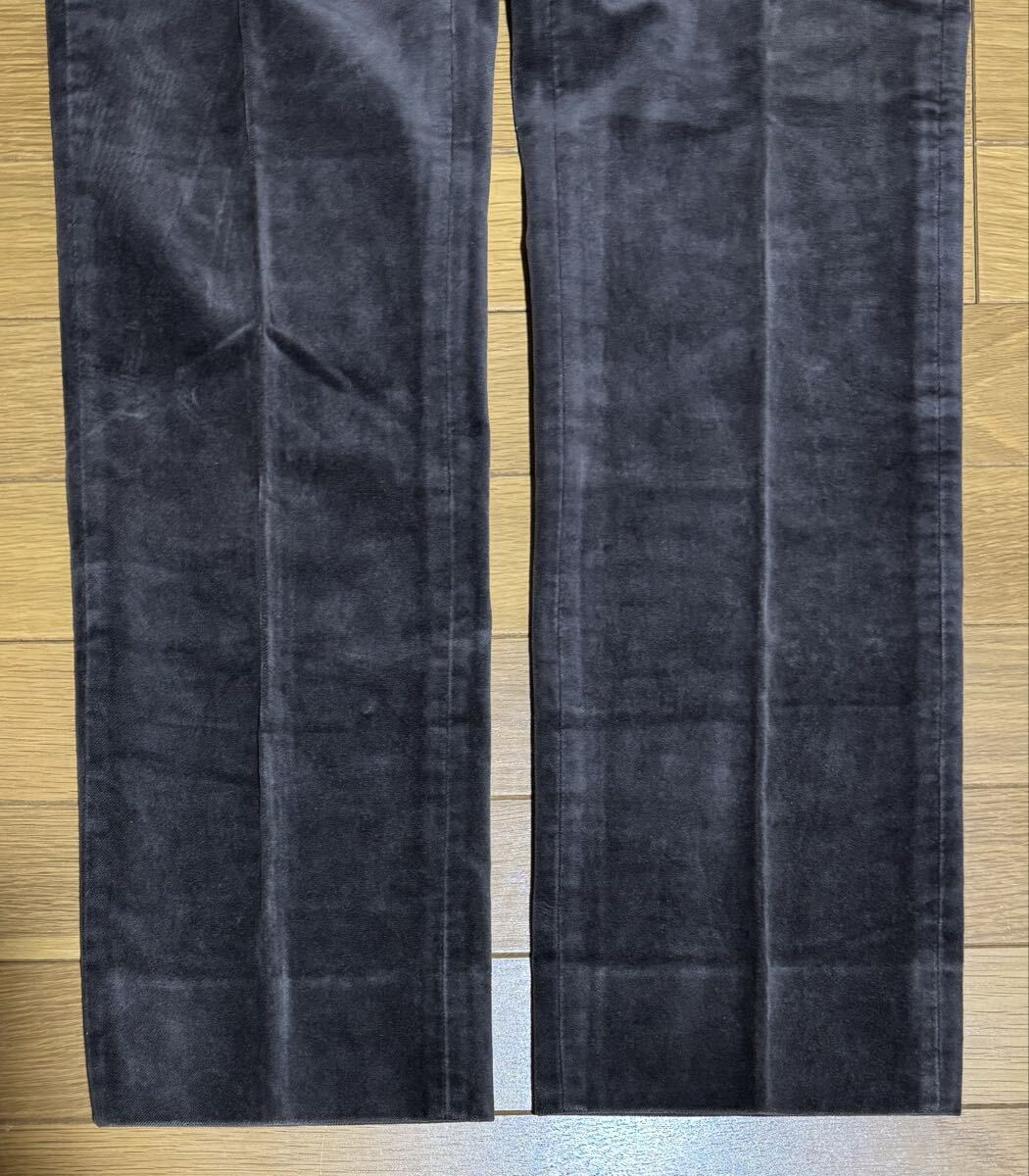・生地の特性上、センタープレス跡、サイドシームに沿ったアタリ、折りシワが多少見られます