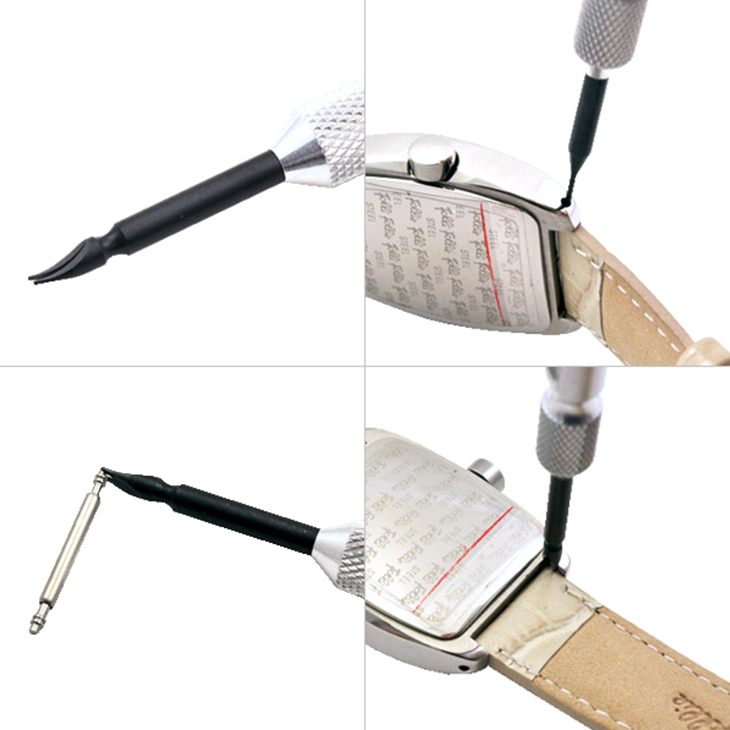 革ベルトのベルト交換や、クラスプの微調整、電池交換の時などの必需品。 自宅で簡単に調整出来ます♪ 両先とも先端を交換することが出来ます。 初めは固い場合がありますので、滑らないように回して頂くと取り外せます。 こちらの商品は【クリックポスト】発送対応商品です。 |