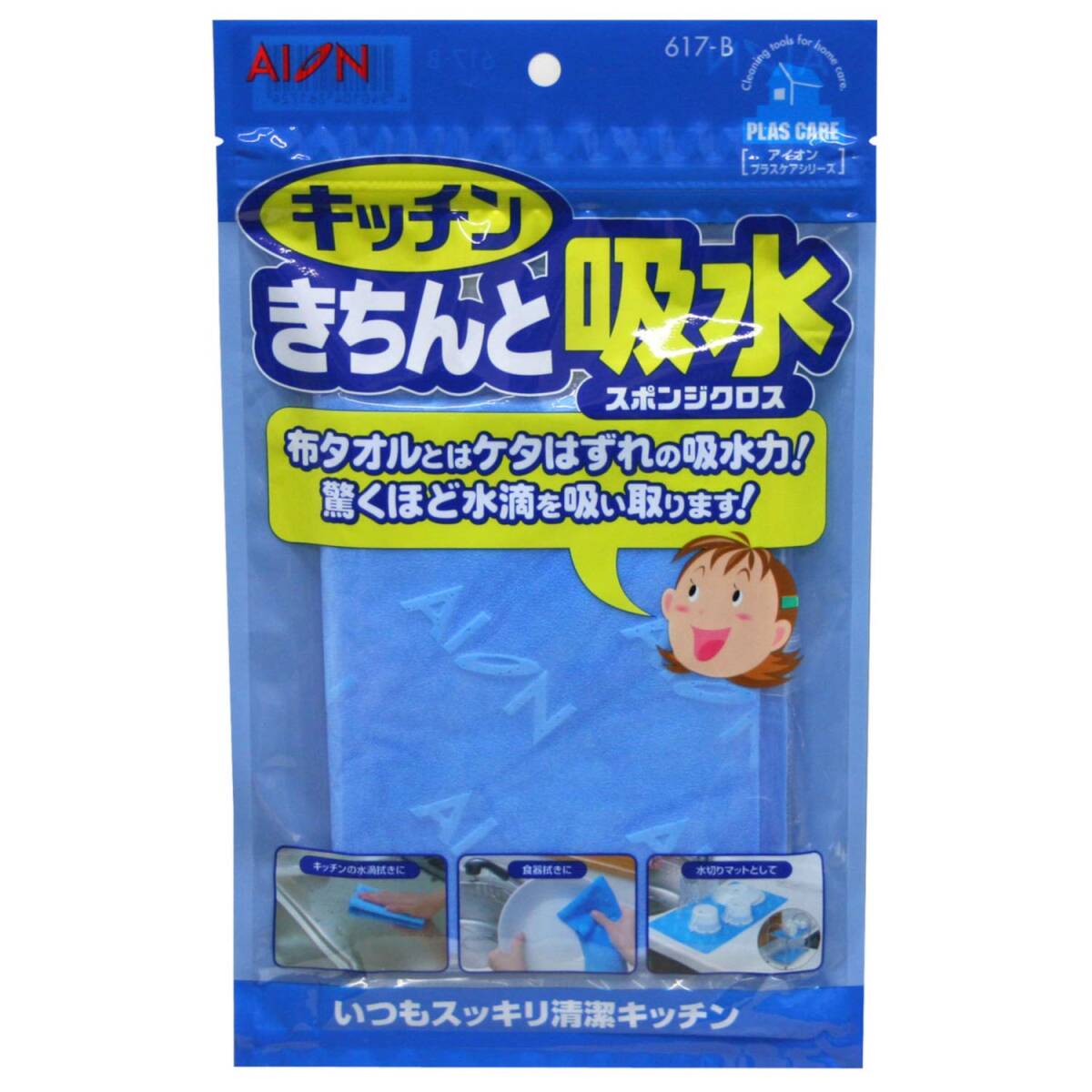 アイオン 吸水スポンジ クロス ブルー 43×22.5cm 絞ればすぐに元の吸水力復活 水滴拭き 食器拭き 水切りマット 日本製 617-B