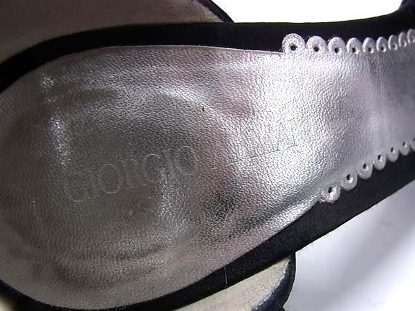 ■美品■ GIORGIO ARMANI ジョルジオアルマーニ サテン ビーズ ヒール パンプス 表記サイズ 34 1/2 (約22.2cm) 靴 ネイビー系 DK0295