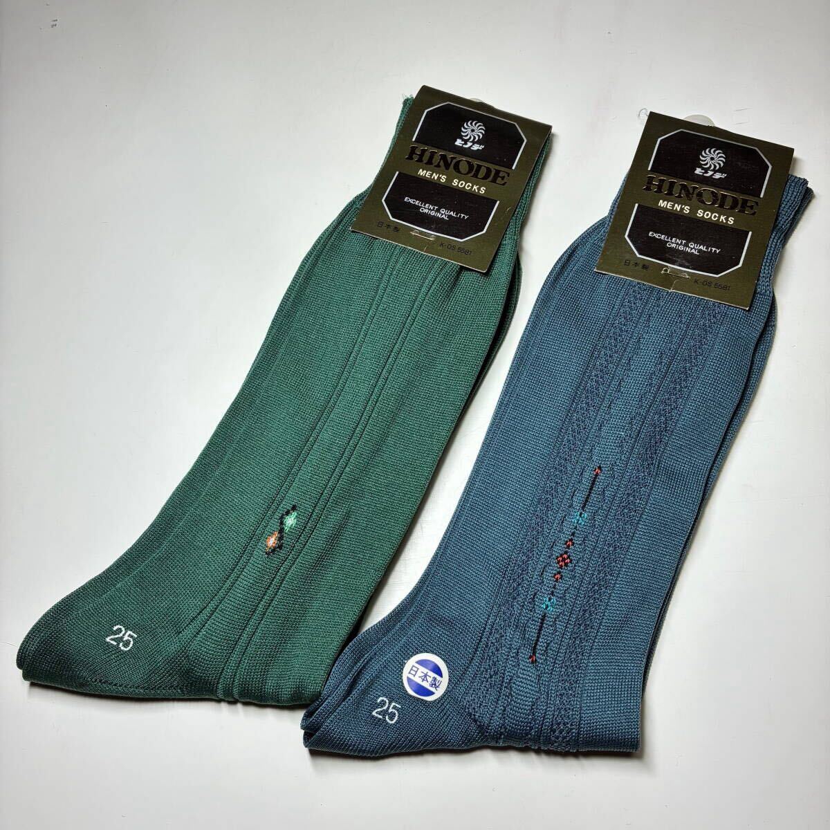 ◆レトロ◆日本製 HINODE/ヒノデ メンズ ソックス 2足セット 25cm◆紳士靴下/ビジネス/カラー