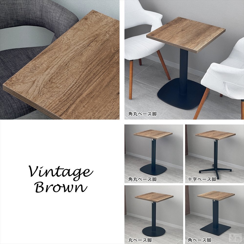 業務用 レストランテーブル 500×500×H700 RTB-5050 ヴィンテージブラウン 角丸ベース脚 |