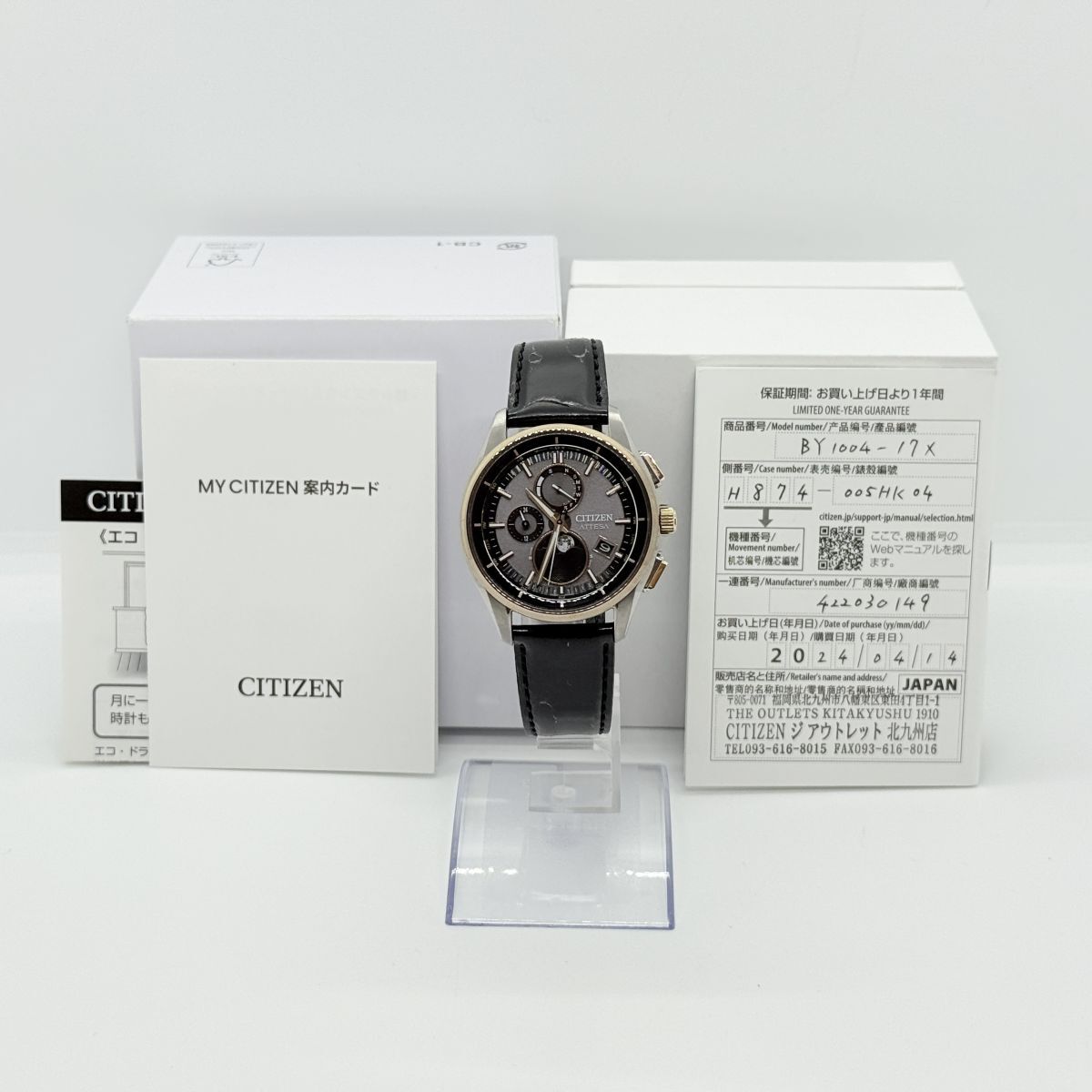 CITIZEN シチズン ATTESA アテッサ H874-005HK04/BY1004-17X 422030149 ソーラー TI 革 グレー