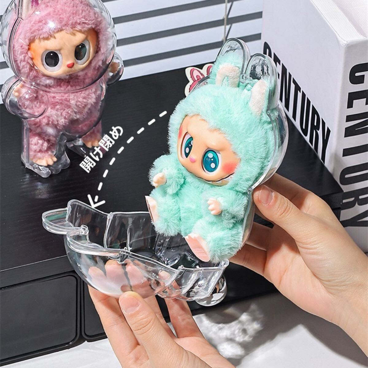 ラブブ 第1/3世代 LABUBU ケース クリア カバー 360°視認可能 汚れ防止 収納バッグ 散歩用 防塵 携帯 収納ケース 傷つけ防止 透明ケース