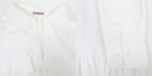 アンダーカバー UNDERCOVER Sue シャツワンピース フリル シャドーストライプ 切替 ドット調 ロング マキシ 長袖 1 約S 白 ホワイト