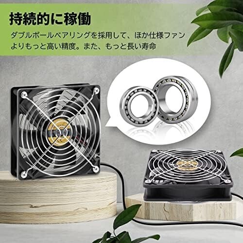 デュアルボールベアリングを採用、2個のボールベアリングを通して、羽根の安定した回転を確保し、ファンの振動も抑えてくれます。更に、約60000時間の定格寿命という強みを持ちますため、一日中24時間連続稼働可能。