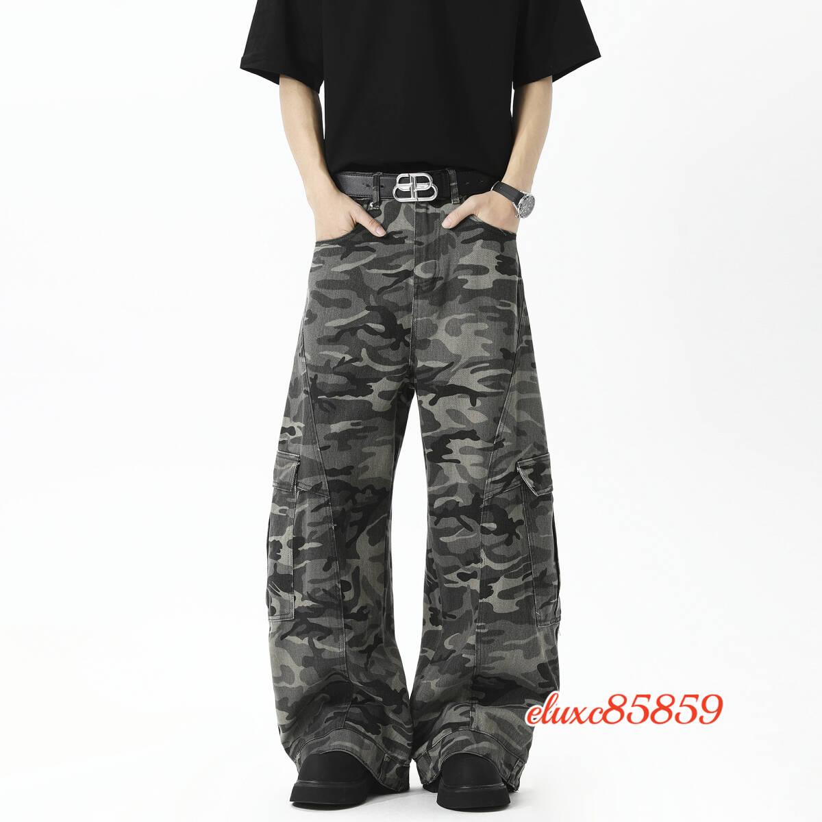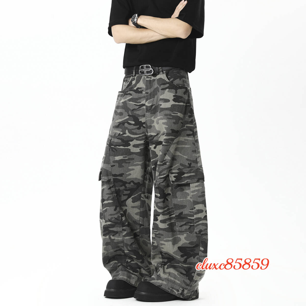 秋冬新品 メンズ カーゴパンツ カモフラージュ 迷彩柄 ミリタリー ワイドパンツ ワークウェア ストリート アウトドア サイズ選択可L オリーブ