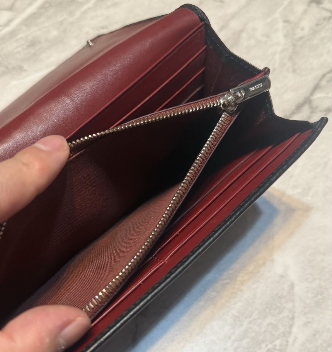 シルバーのロゴデザインと内側のワインレッドとのコントラストが全体的に上品な印象を与えます。