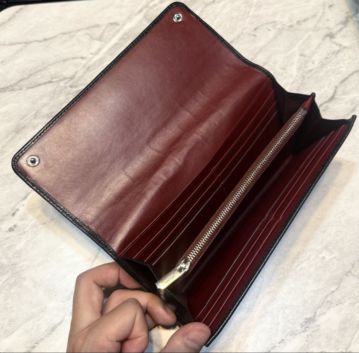 ・上質だ柔らかいシボ革のシュリンクレザーを使用したフラップ式の長財布となります。