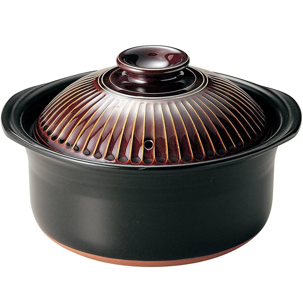 銀峯陶器 菊花 ごはん土鍋 萬古焼 ( 2合 炊き / 飴 / 二重蓋 ) 「 土鍋 ご飯 ごはん 鍋 炊飯 銀峯 炊飯鍋 」