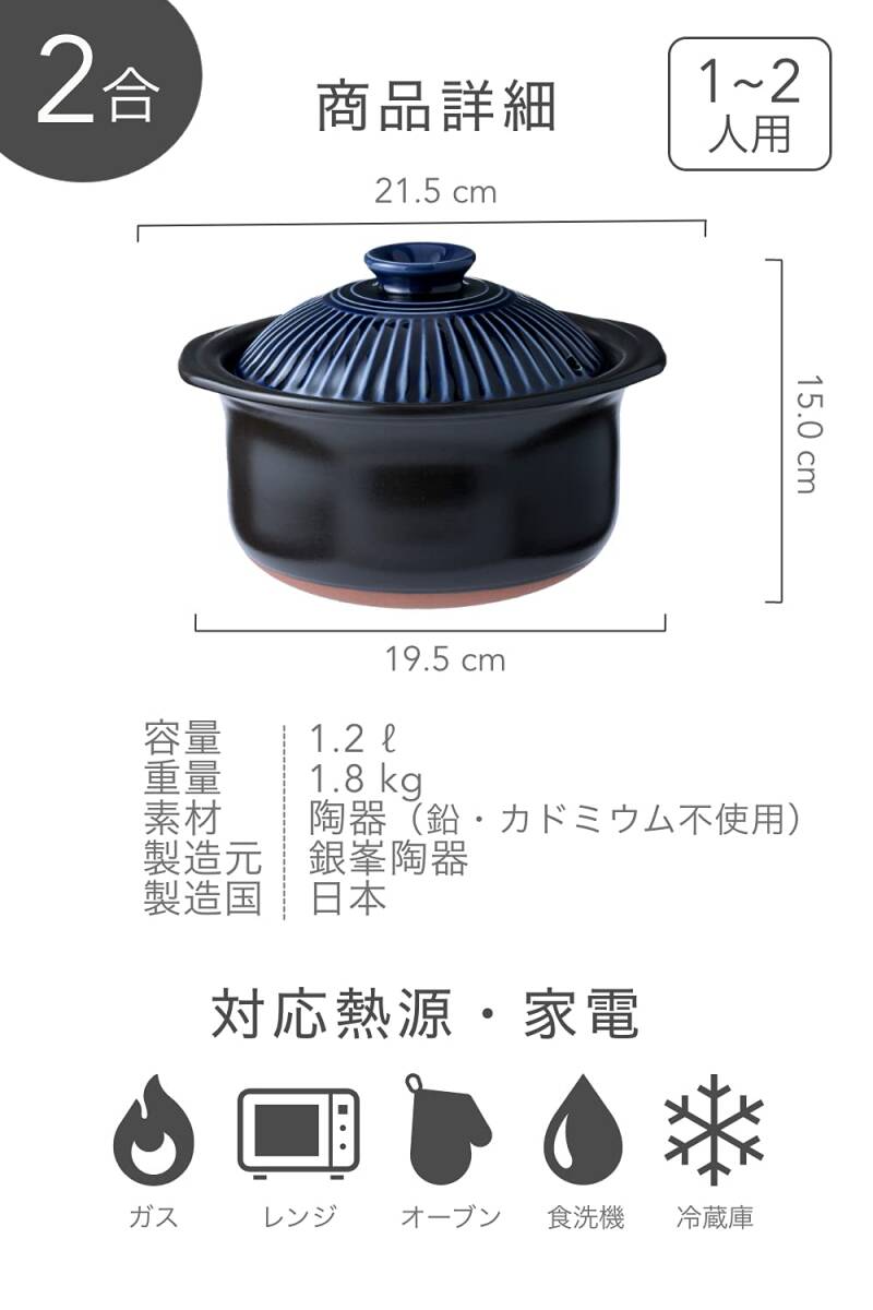 説明 炊飯土鍋は熱のあたりが柔らかく蓄熱性が高いので、お米を包むように熱を伝える 遠効果に加え二重蓋による圧力効果で、美味しいご飯が炊きあがる 火を止める時間を少し伸ばせば、香ばしい匂いと共におこげも楽しめる また、煮込み料理にも使え、じっくり柔らかに煮込むことができる 持ち手が大きく滑りにくいデザイン 食品衛生法に適合(鉛、カドミウム不使用)している