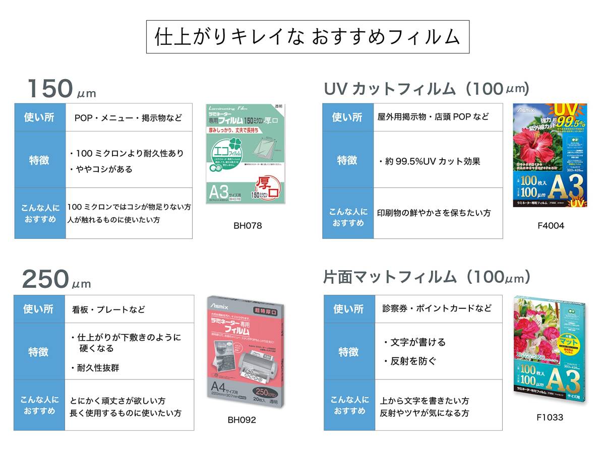 ・ゴミやほこりがつきにくいラミネーター専用フィルム