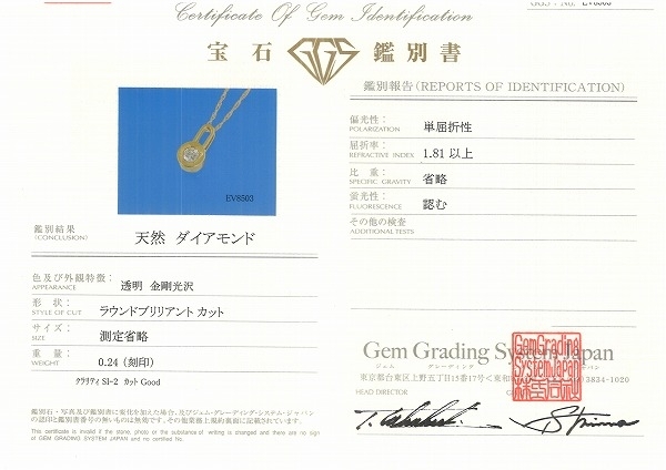 | K18YG ネックレス ダイヤ 0.24 SI2 鑑別書 総重量約2.3g 約40cm 中古 美品 送料無料 | |