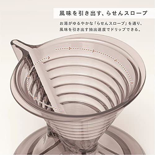 ・【美味しさupの螺旋設計】簡単にコーヒーの美味しさを引き出せる速度でドリップできる、らせんスロープ。外側ではコーヒーが回りながらゆっくりと流れるので、お湯を中心に注いであげるだけでプロの味が楽しめます。