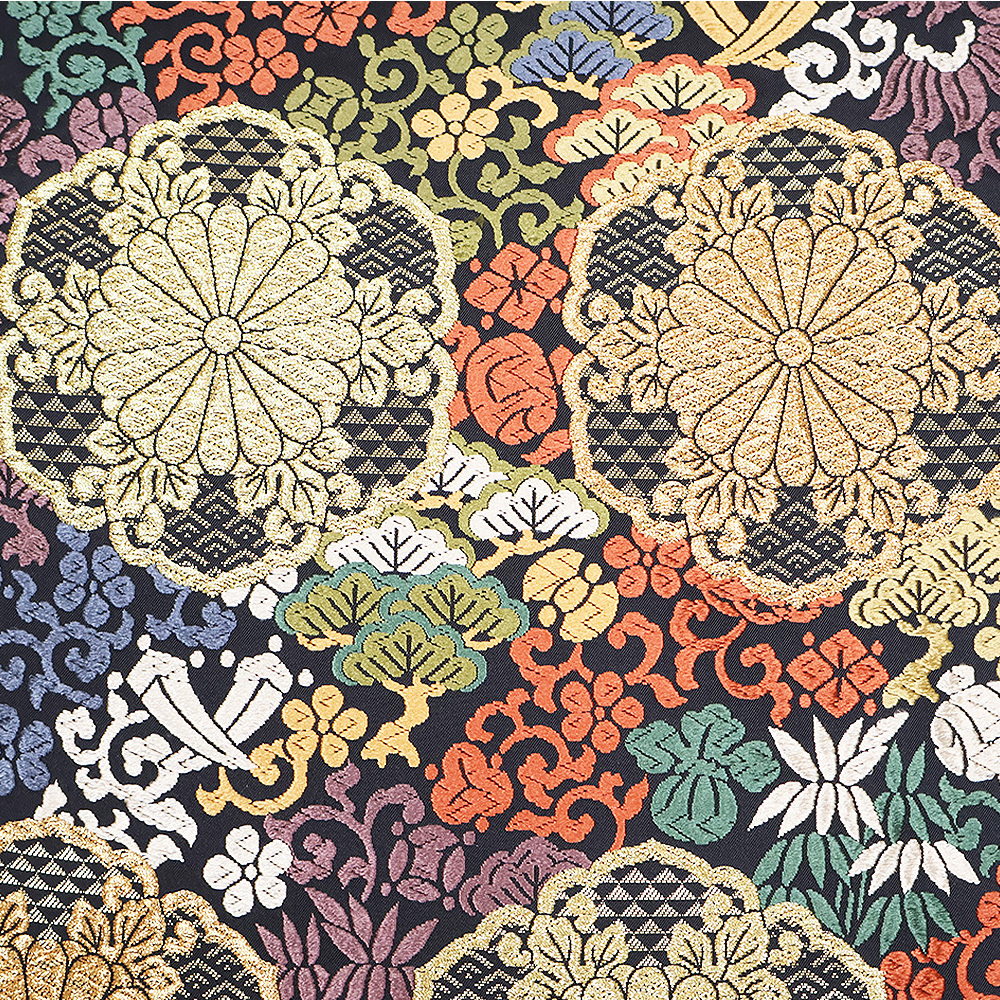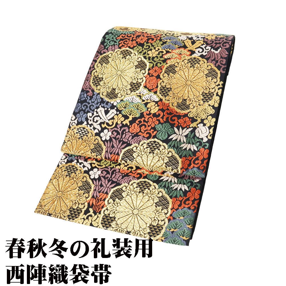 | 色・柄 | 西陣織袋帯 雅菊寿宝文 濃い紫地 唐織・松竹梅・宝尽くし・雅菊文 (写真では上手く色が出ない場合があります。ご了承下さい) ※お使いのディスプレイの種類や設定の差により 実物の色と画像の色が少々異なることもございます。 |