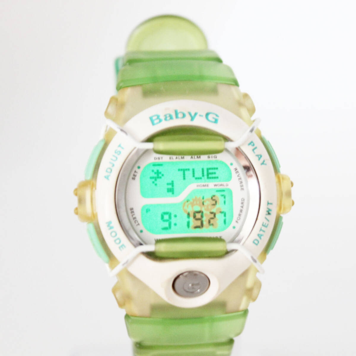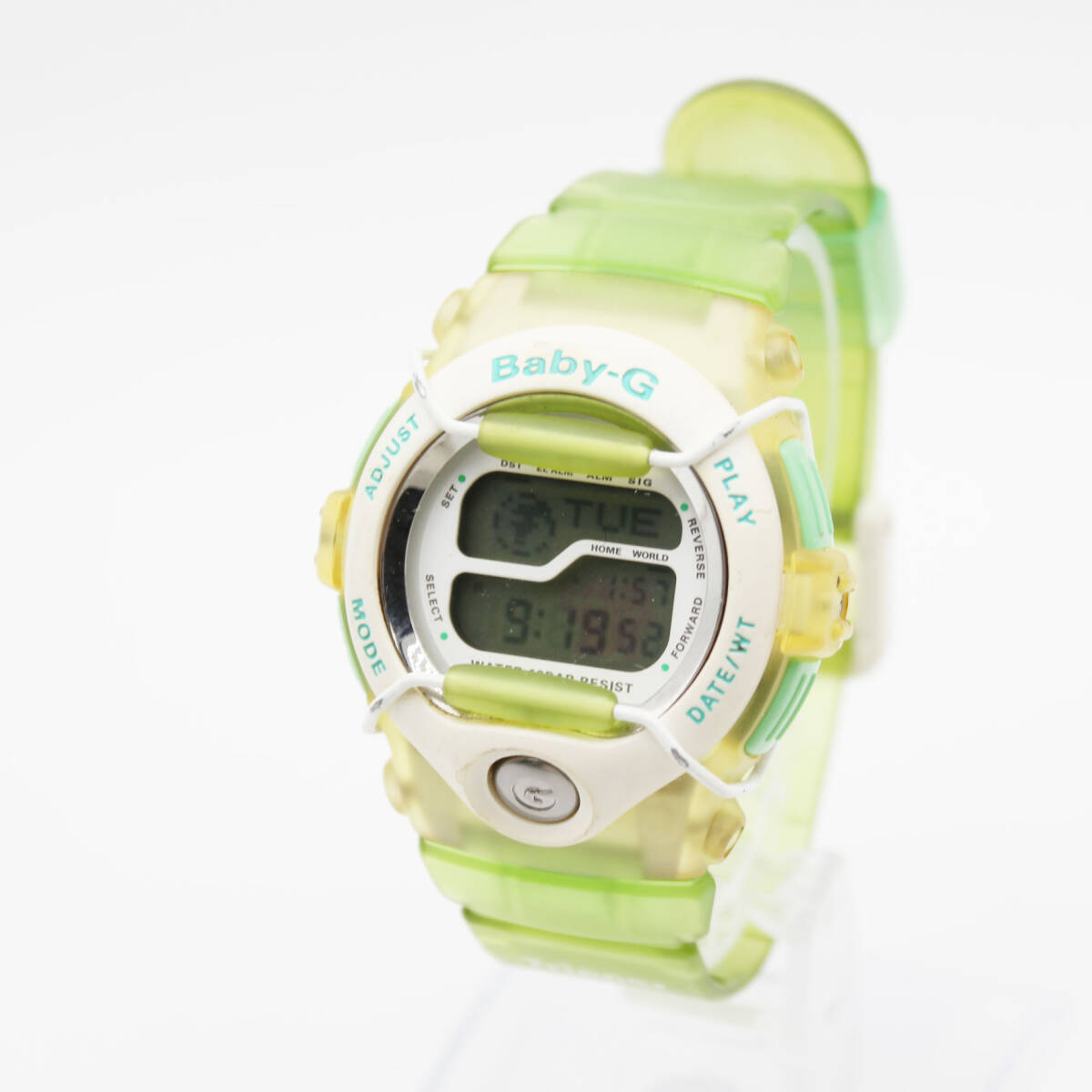 W251015-21 【電池交換済み】CASIO Baby-G カシオ ベビージー BGT-100 デジタル クォーツ ジャンク 文字盤ホワイト グリーン バックライト