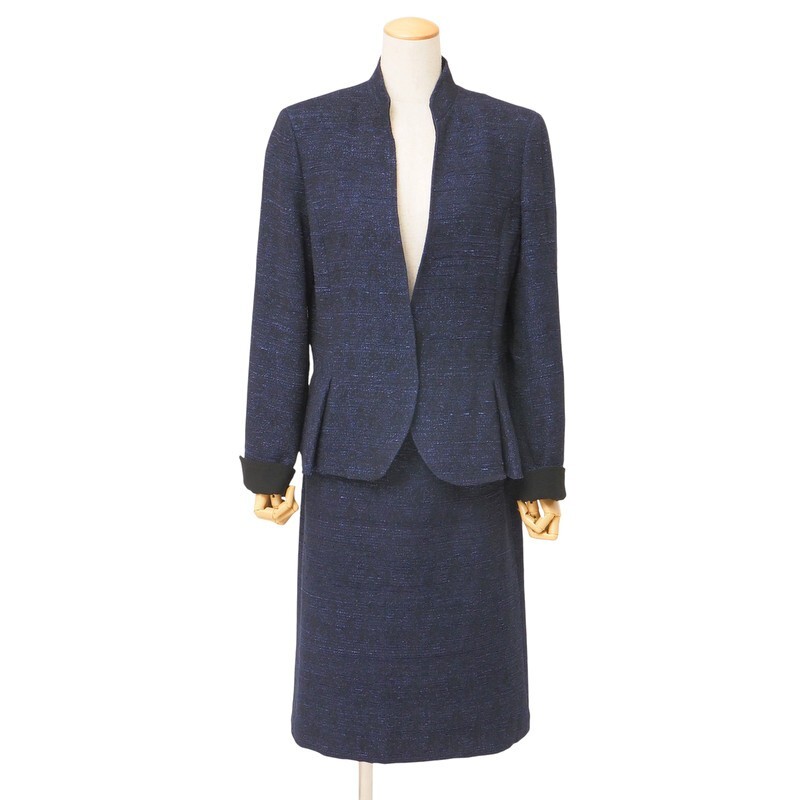 | TJ5164□ケーティー キヨコタカセ/K.T. KIYOKO TAKASE セットアップ スーツ ペプラムジャケット + スカート ツイード サイズ15 ネイビー系 | |||