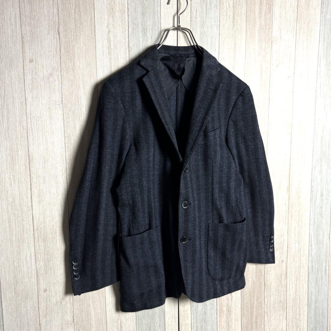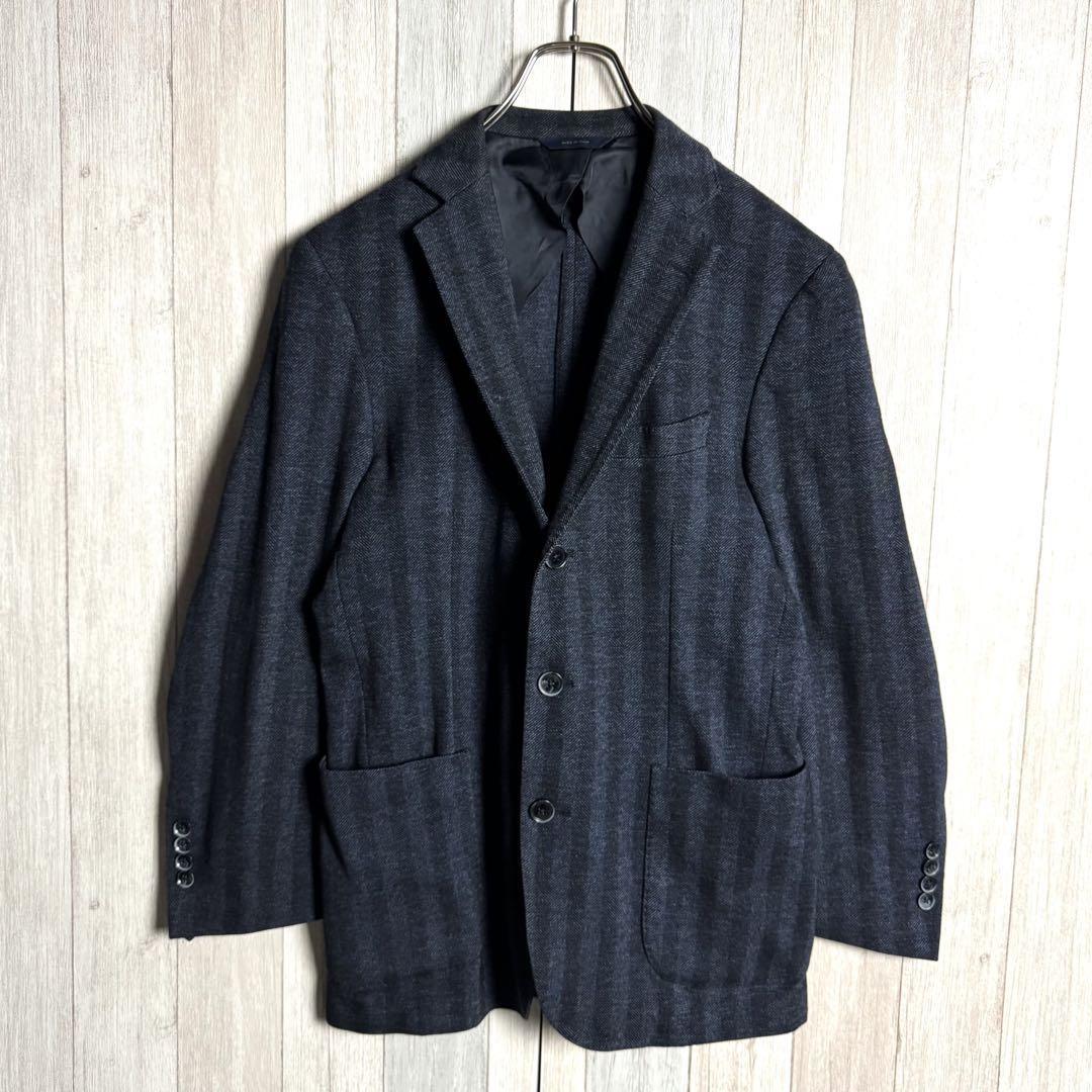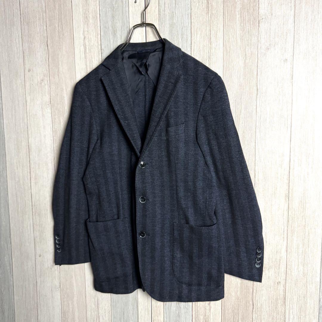 【希少モデル・イタリア製・美品】BROOKS BROTHERS ブルックスブラザーズ ジャージー ストライプ テーラードジャケット ネイビー・紺 37