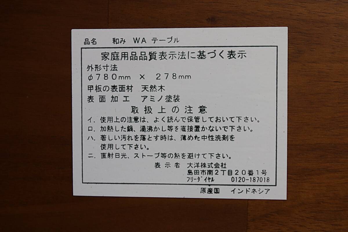| 商品説明 | 《商品説明》 古い和みWテーブル丸ちゃぶ台です。天然木アミノ塗装 大洋株式会社と裏にシールあります。 クリーニングし傷タッチアップしてあります。 お薦めです。 《サイズ》 約78㎝(直径)×約27.8㎝(高さ)畳んだ場合約7㎝ |