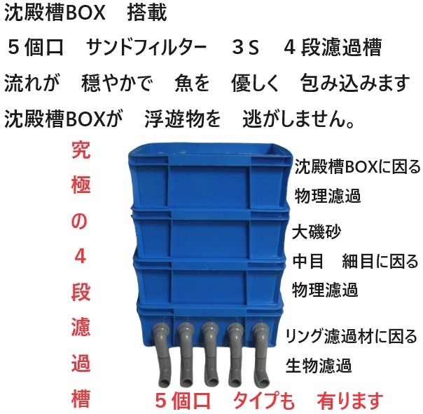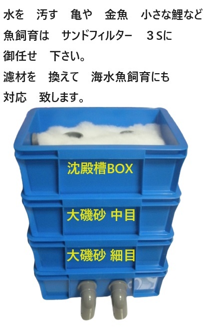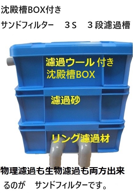 茶ゴケ 抑制対応 沈殿槽BOX 搭載 サンドフィルター 3S 3段タイプ 大磯砂 濾過ウール 付き ポンプ無し 13