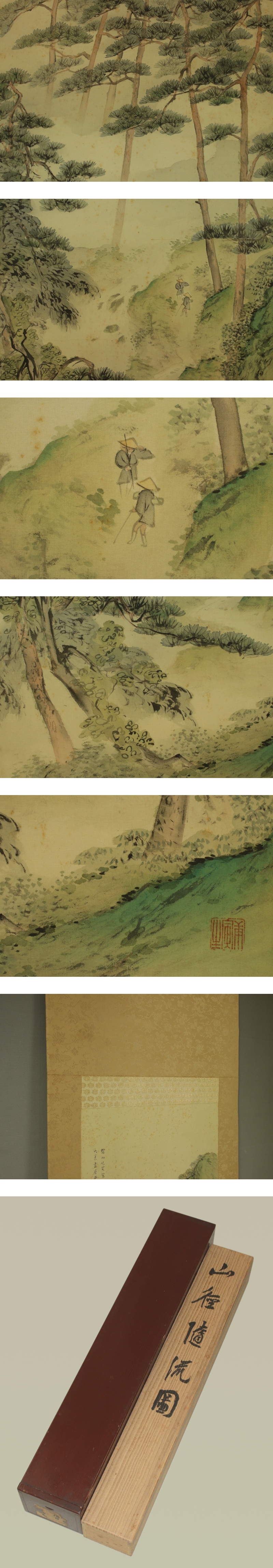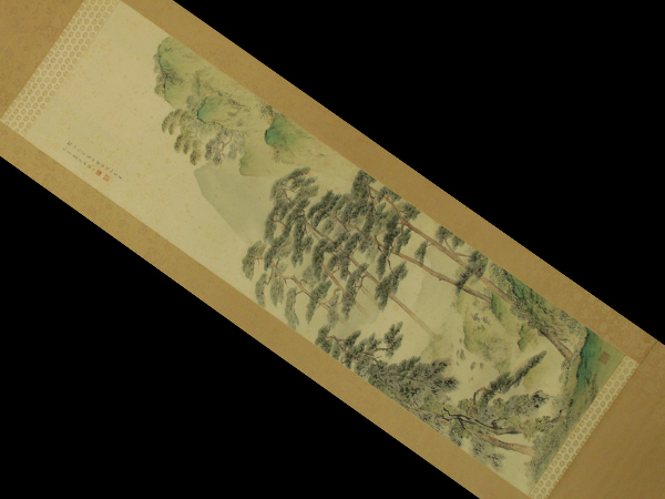 | №2506018【真作】矢野橋村【山崖随流図】◆絹本◆共箱◆二重箱◆掛軸 | |