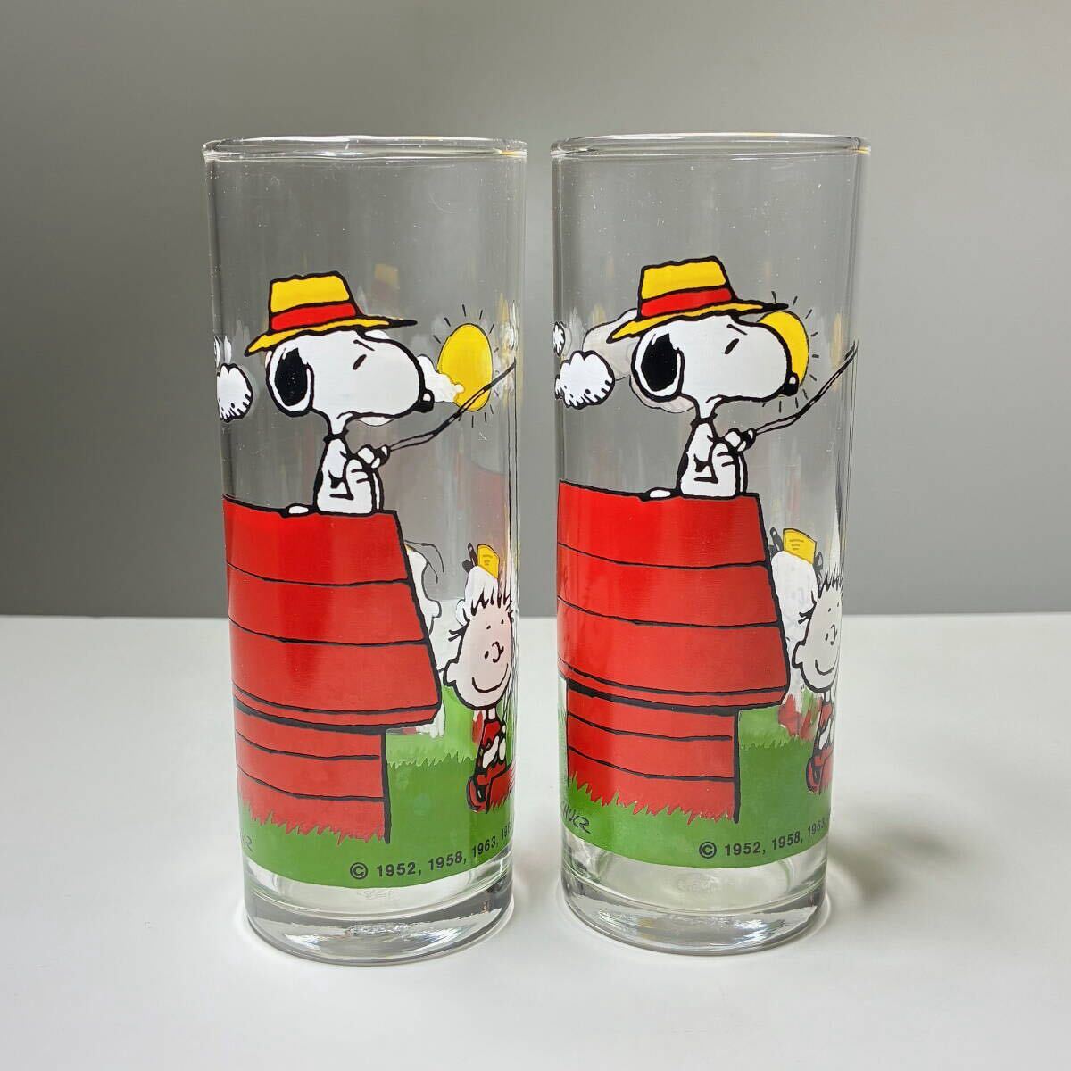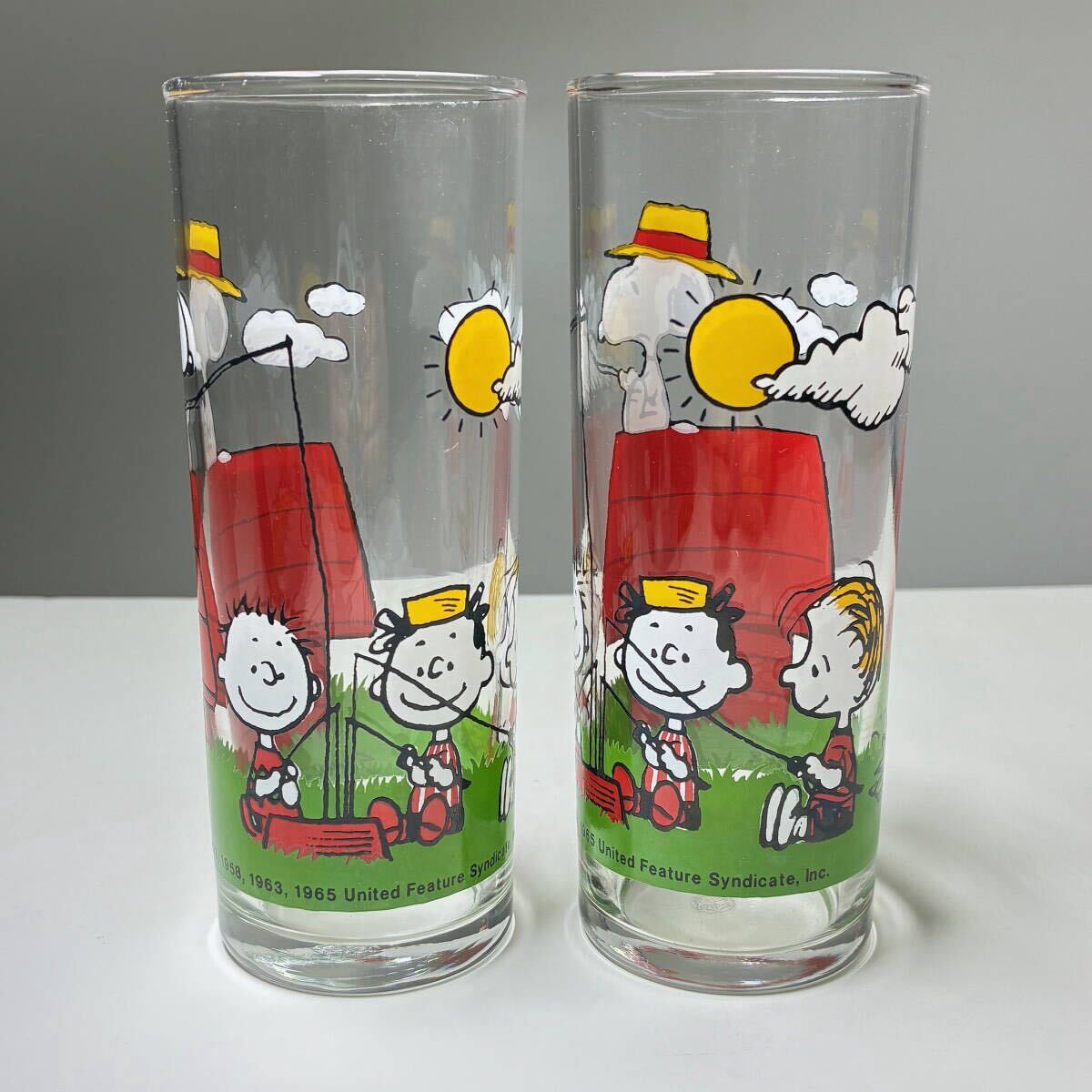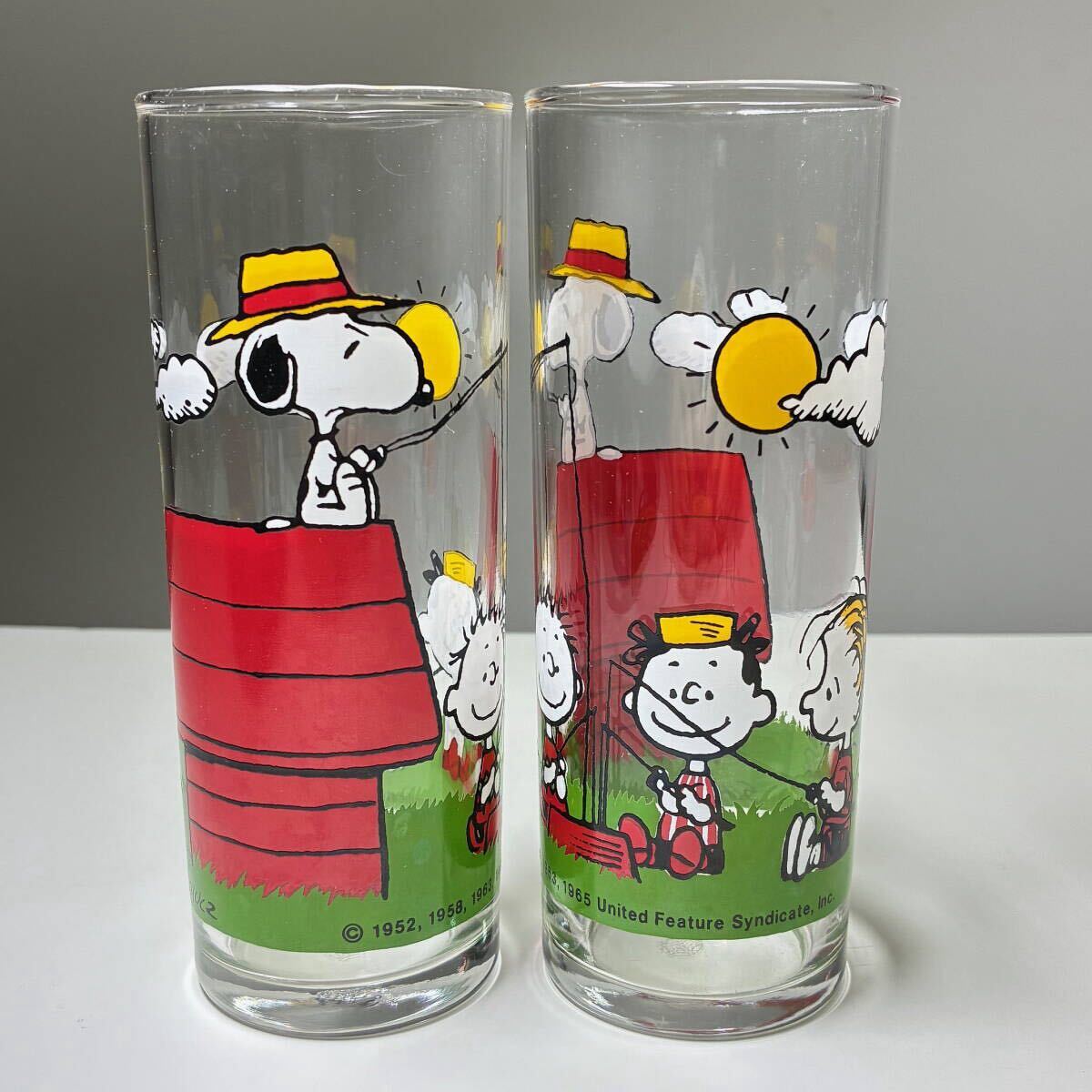 ★レトロ★スヌーピー トールグラス 2コセット 高14.5cm★ヴィンテージ/ピーナッツ/チャーリーブラウン