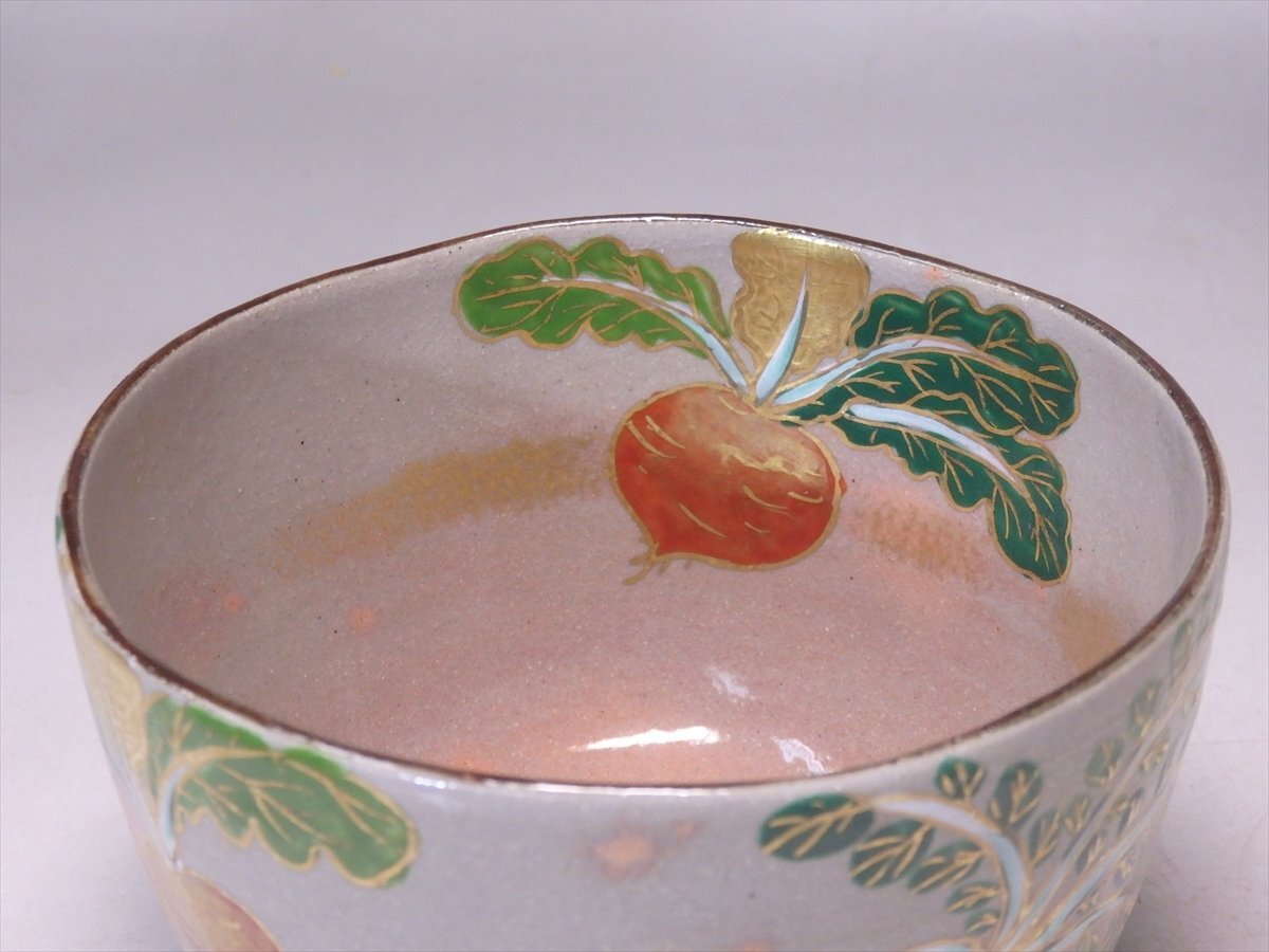 【管理番号5-1016134-6 スタッフコメント:iy】  ☆まるまるとした大根と、真っ赤な蕪の絵です。紅白の色合いが縁起がよいです。割れや欠けはなく状態の良いお品です。共箱入り。