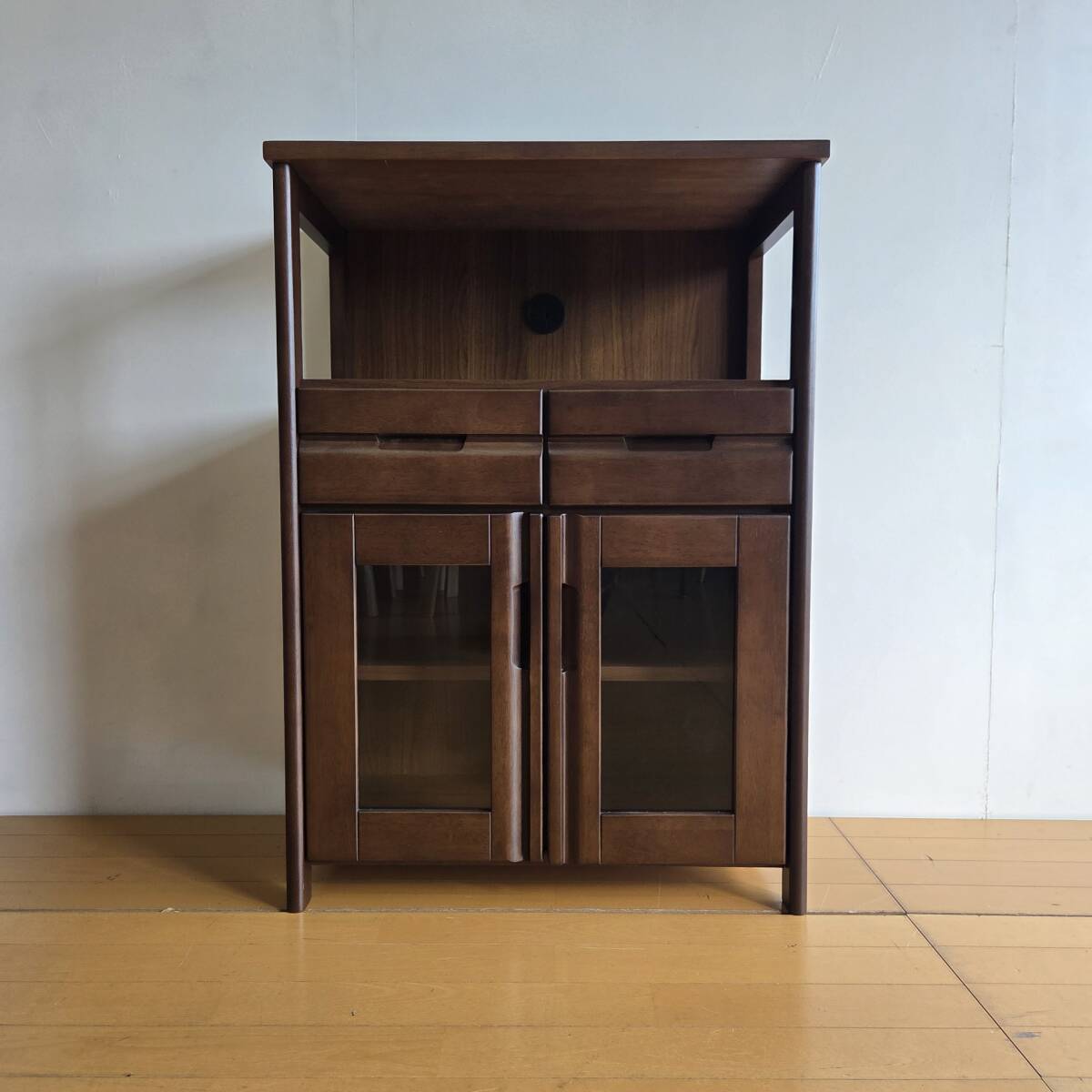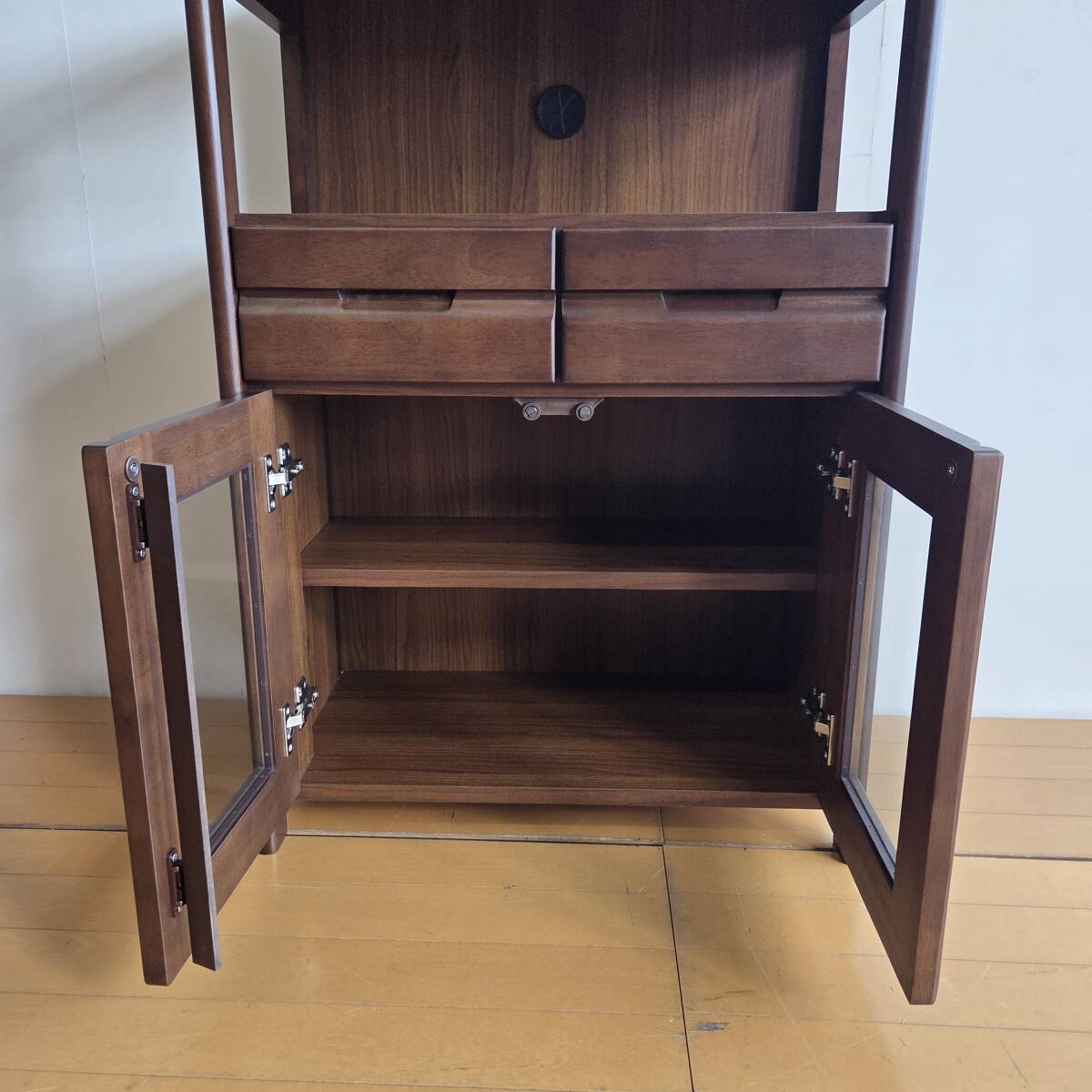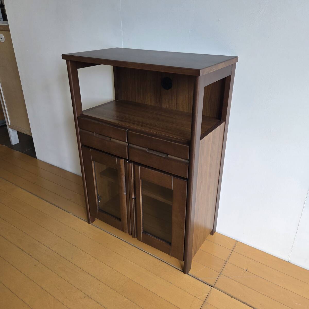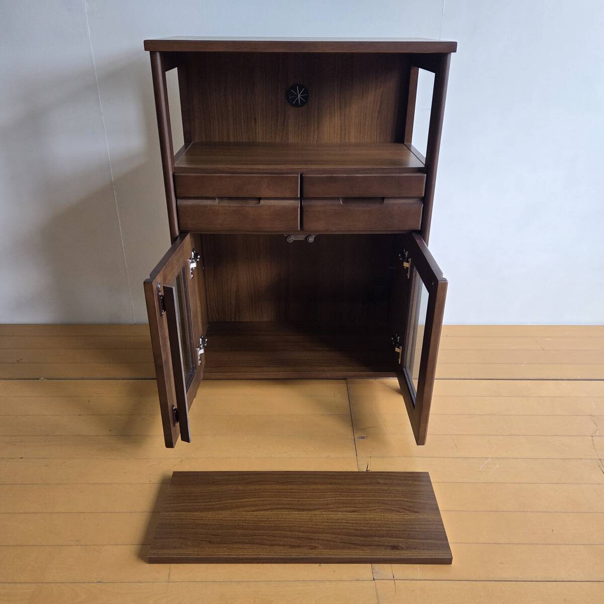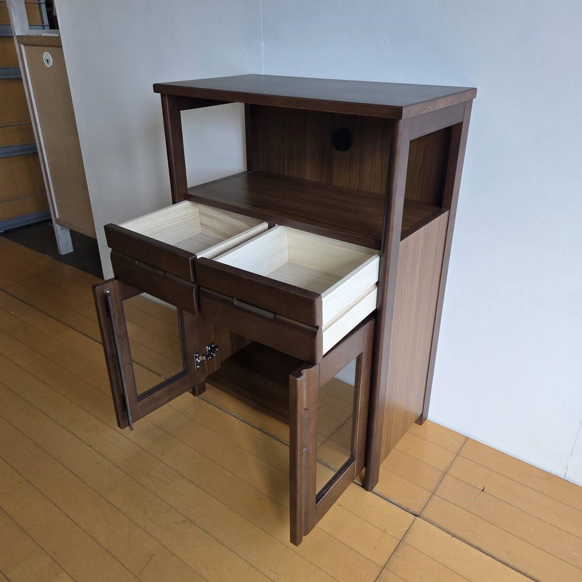 未使用訳あり 幅60 電話台 FAX台 ルーター収納 天然木 サイドボード キャビネット ブラウン 引き出し収納 ガラス扉収納 オープン