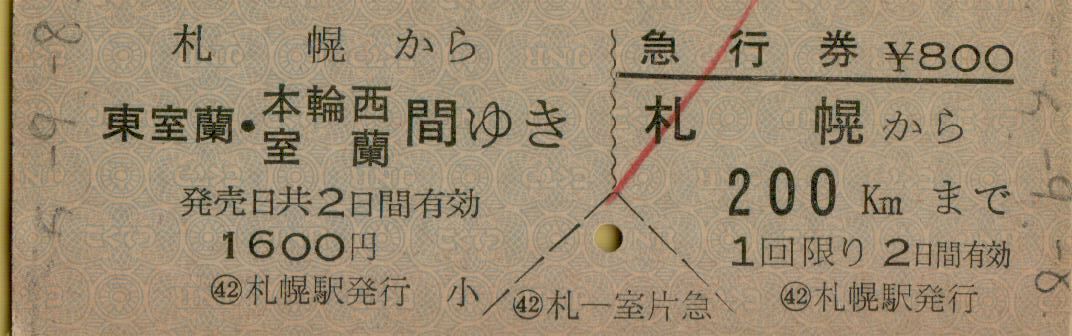 ■■ 国鉄 札幌 【 乗車券 急行券 】