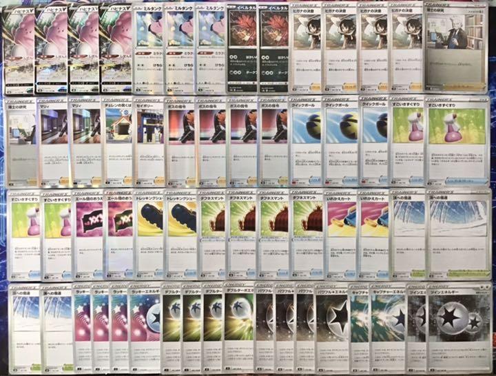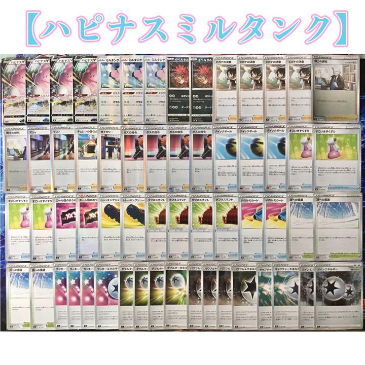 ★最新構築のハピナスミルタンクデッキ VポケモンにつよいミルタンクとハピナスVによりVデッキや特性デッキに強い構築 トレッキングシューズや各種エネルギーも複数採用 ★メインとエクストラ分のインナースリーブとオーバースリーブもセットです。 #かしこまポケカデッキ ※カードは一律プレイ用になります。 ※商品は即購入OK ※高レアリティのものでない限り型番とレアリティは統一していません。(高レアリティの場合は説明欄に記載致します) ※商品は期限内に梱包した上で発送致します。(水濡れ等の梱包をいたします) ■ポケモン 4枚 パピナスV 3枚 ミルタンク 2枚 イベルタル ■サポート 4枚 ヒガナの決意 2枚 博士の研究 2枚 マリィ 1枚 チェレンの気くばり 1枚 セイボリー 4枚 ボスの指令 ■グッズ 3枚 クイックボール 4枚 すごいきずぐすり 2枚 エール団のおうえんタオル 2枚 トレッキングシューズ 4枚 タフネスマント 2枚 いれかえカート ■スタジアム&エネルギー 4枚 頂への雪道 4枚 ラッキーエネルギー 4枚 ダブルターボエネルギー 4枚 パワフル無色エネルギー 2枚 キャプチャーエネルギー 2枚 ツインエネルギー