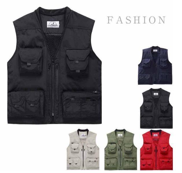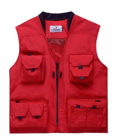 メンズ ベスト カメラマンベスト フィッシングベスト アウトドア メッシュ 多機能 お釣り 登山服 撮影用 レッド M/L/XL/2XL/3XL