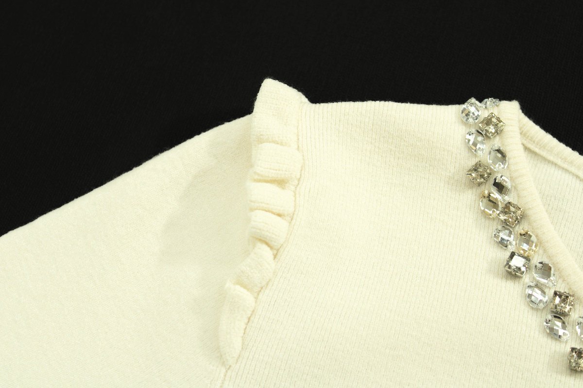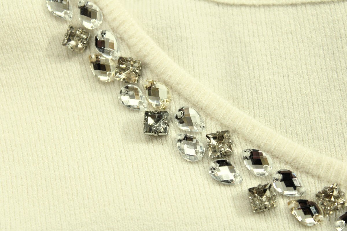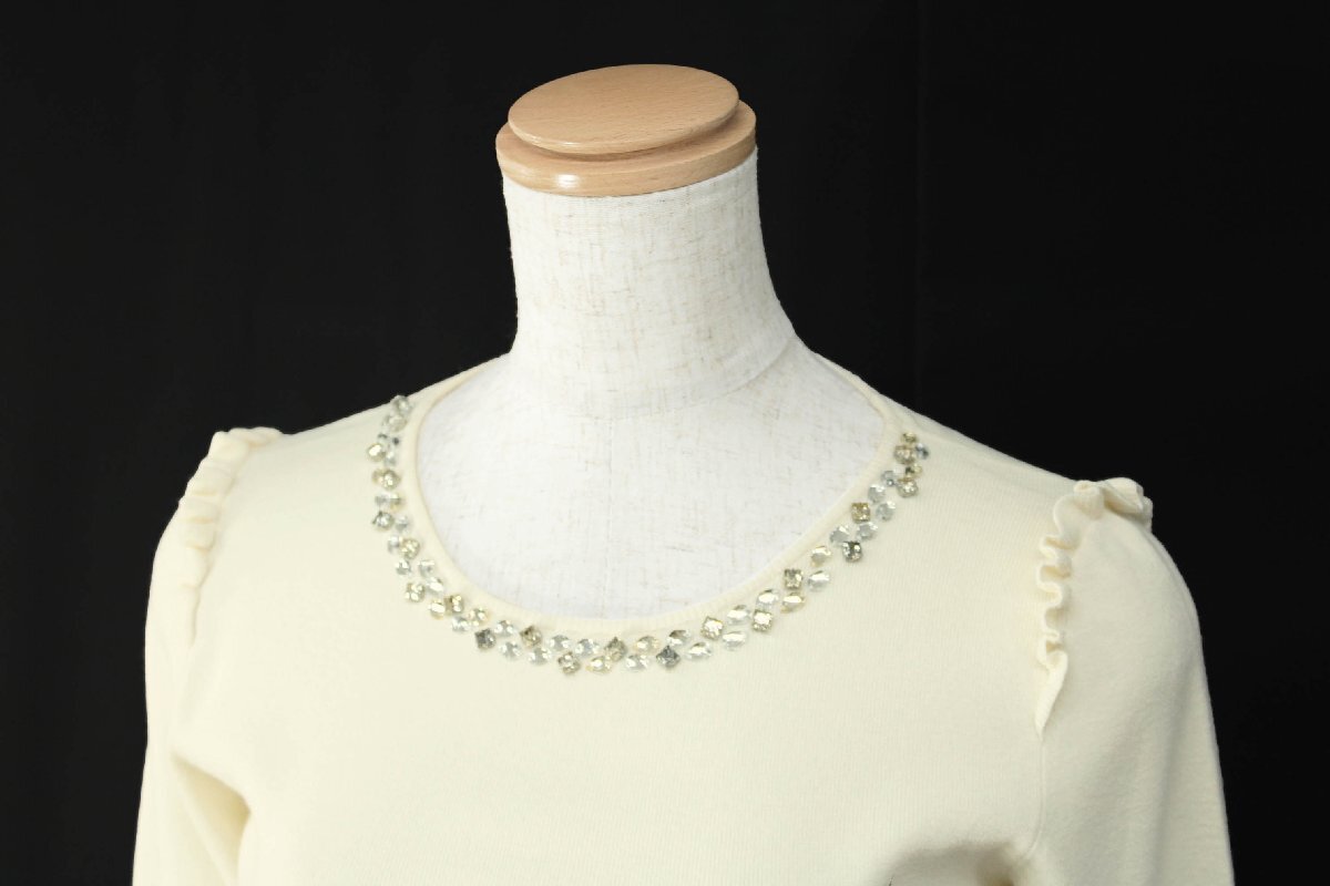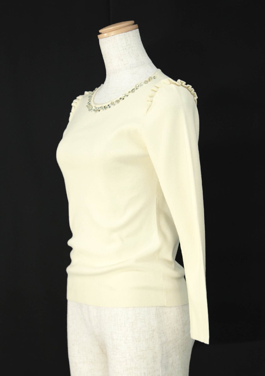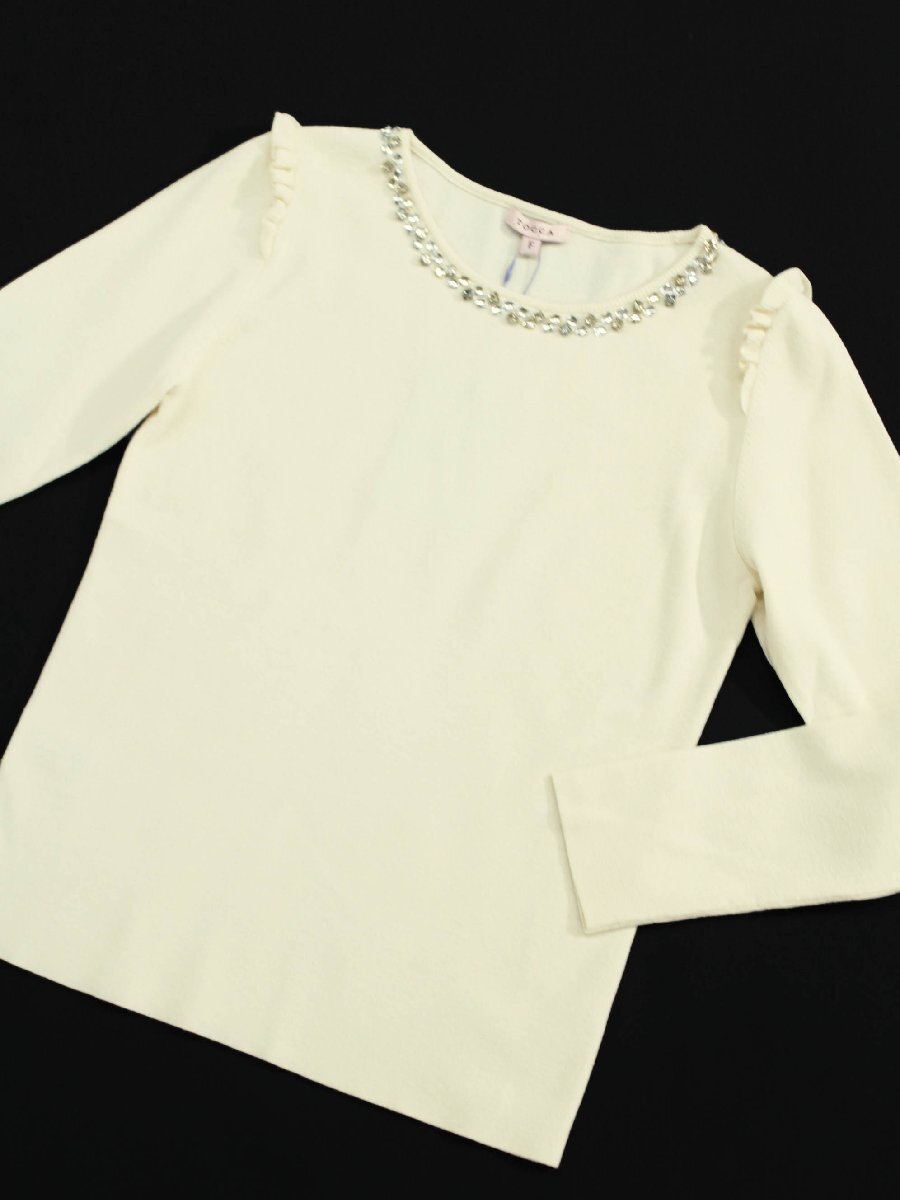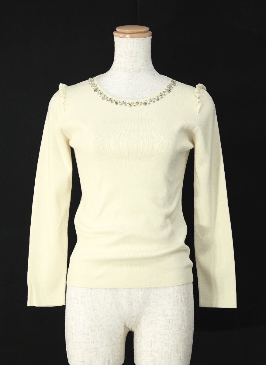 ★未使用★TOCCAトッカ/洗えるフリル&ビジュー使いニットプルオーバー定価2.4万:F/アイボリー系yx633