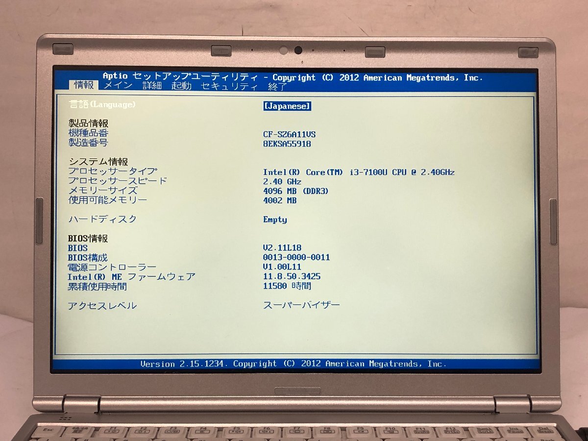 ジャンク/ Panasonic CF-SZ6A11VS Intel Core i3-7100U メモリ4.1GB ストレージ無し 【K22757】