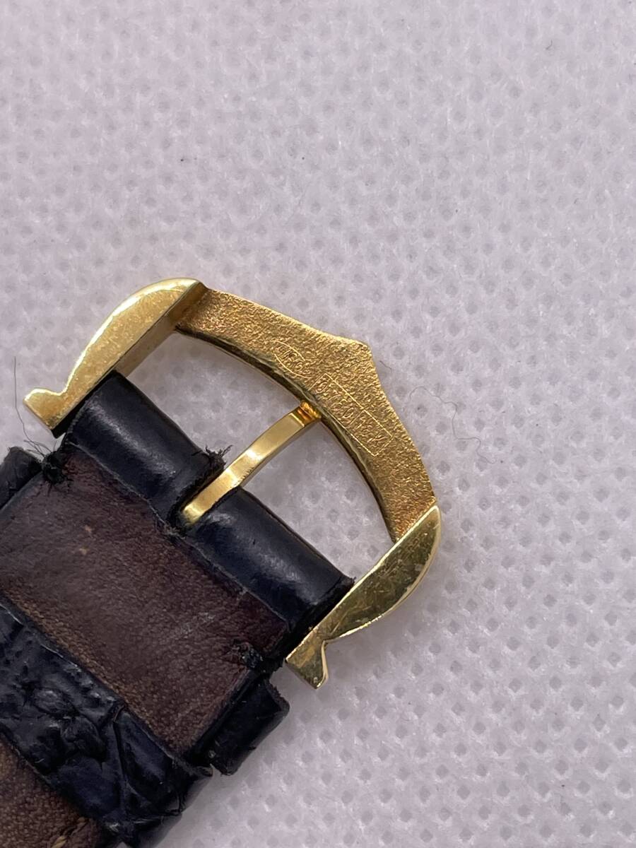 18金無垢ケースは繊細で美しい造形を保ち、微細な使用感があるものの全体的に非常に良好な状態です。特に、オリジナルのスピネルカボションが装備された竜頭は、当時のカルティエの高い技術を感じさせます。カルティエ純正の18金尾錠が付属し、オリジナル性も保たれています。「タンク」という名前は,”戦車“を意味し第一次世界大戦の終結に貢献したといわれるルノー製の戦車がデザインの基となっています。
