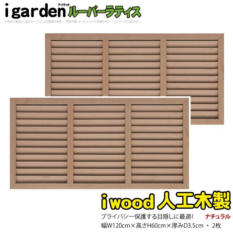 igarden 人工木 ルーバーラティス 2枚セット H600×W1200 ナチュラル 樹脂製 目隠し 日よけ 換気 仕切り 採光 境界 フェンス 10403