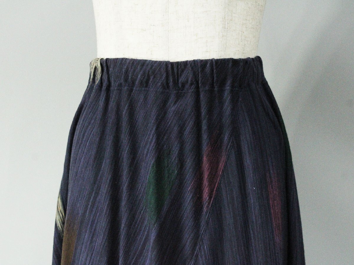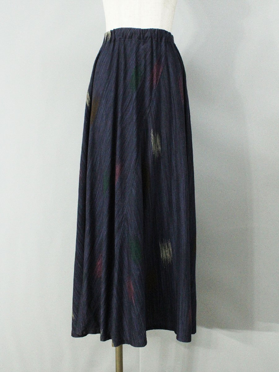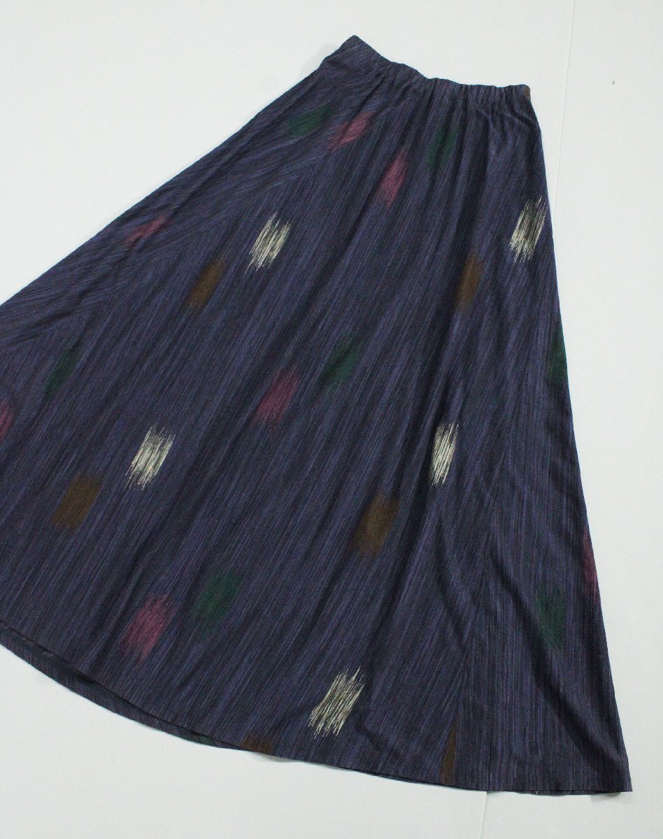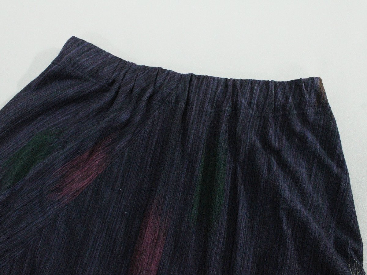 ヨーガンレール コットンストライプ柄ウエスト総ゴムロングスカート 青紫M rm014