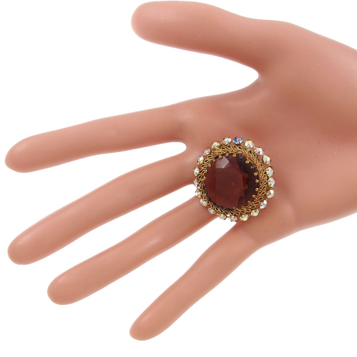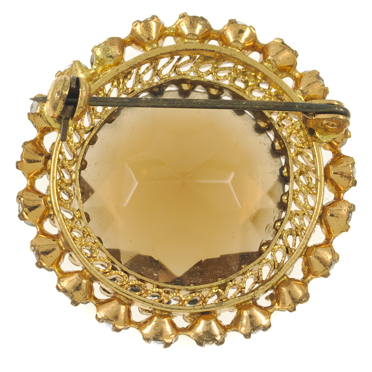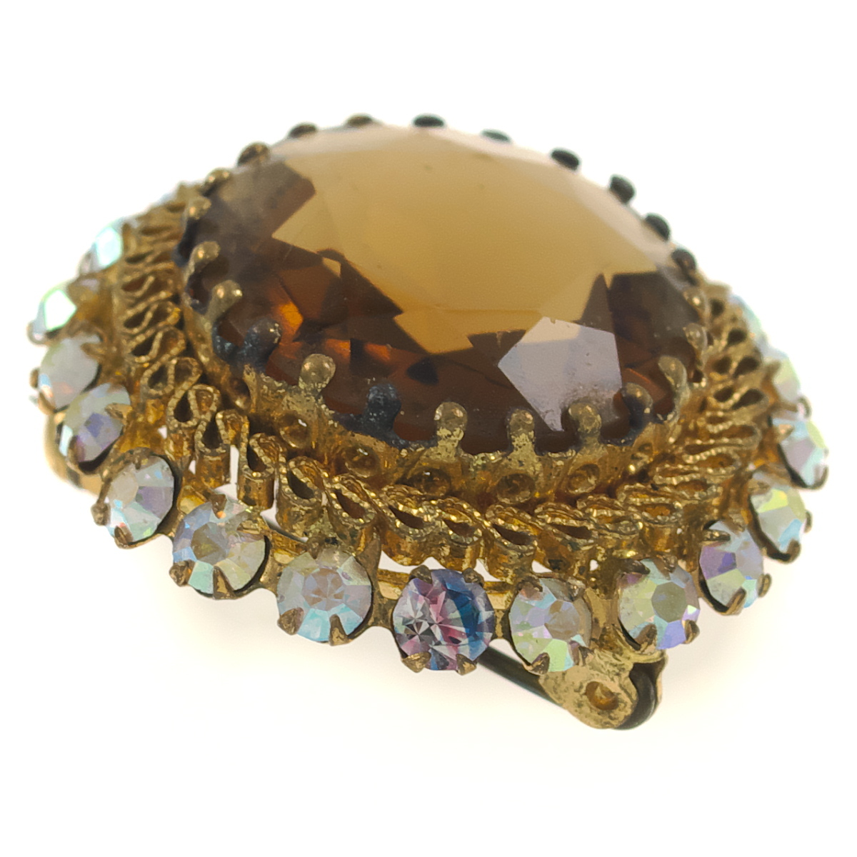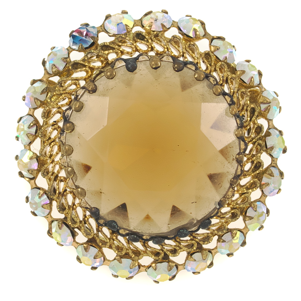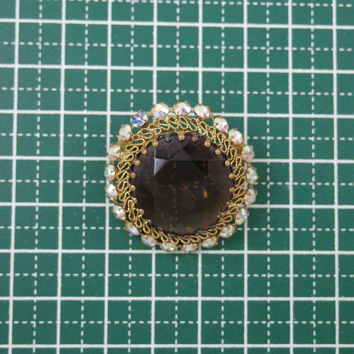 UK4256◆ ワンポイントのアイリスガラス&オーロララインストーン ガラス 色石 英国 イギリス ◆ ヴィンテージブローチ ◆