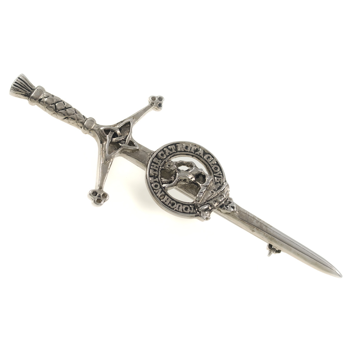 UK4273◆【SCOTLAND】◆ ソードモチーフ 剣 Macpherson氏族 TOUCH NOT THE CAT BOT A GLOVE ケルト 英国 イギリス ヴィンテージブローチ ◆