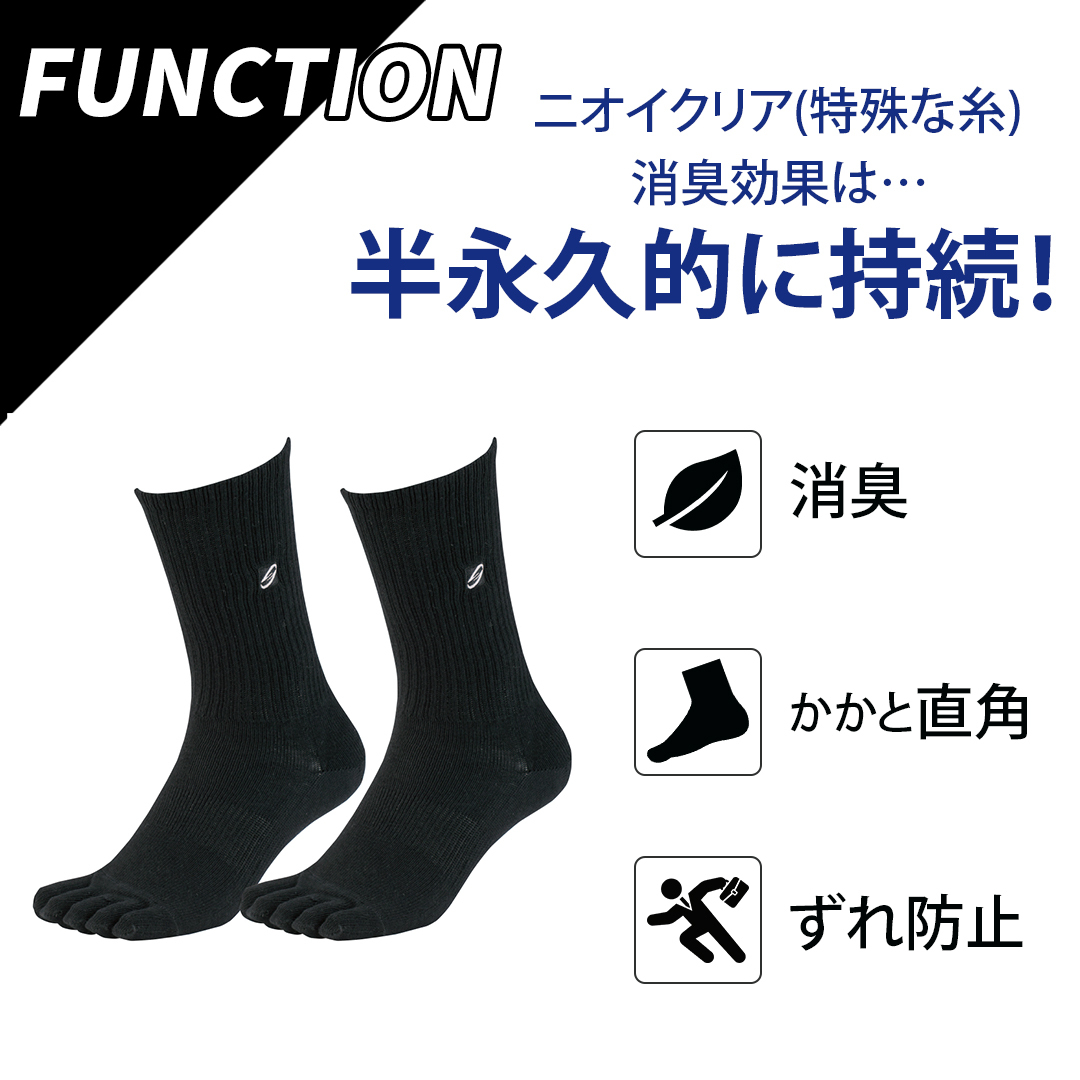 消臭 匂い ずれ防止 ずれない ズレない 黒 シンプル ブラック ソックス 足首 靴下 臭わない 臭い ニオイ抑える 消臭 ブラック 快適 清潔 メンズ 男性 ハイソックス 5本指 ソックス アウトドア ハイキング 山登り スポーツ ゴルフ 嫌な匂い 足 匂い 蒸れ 解消