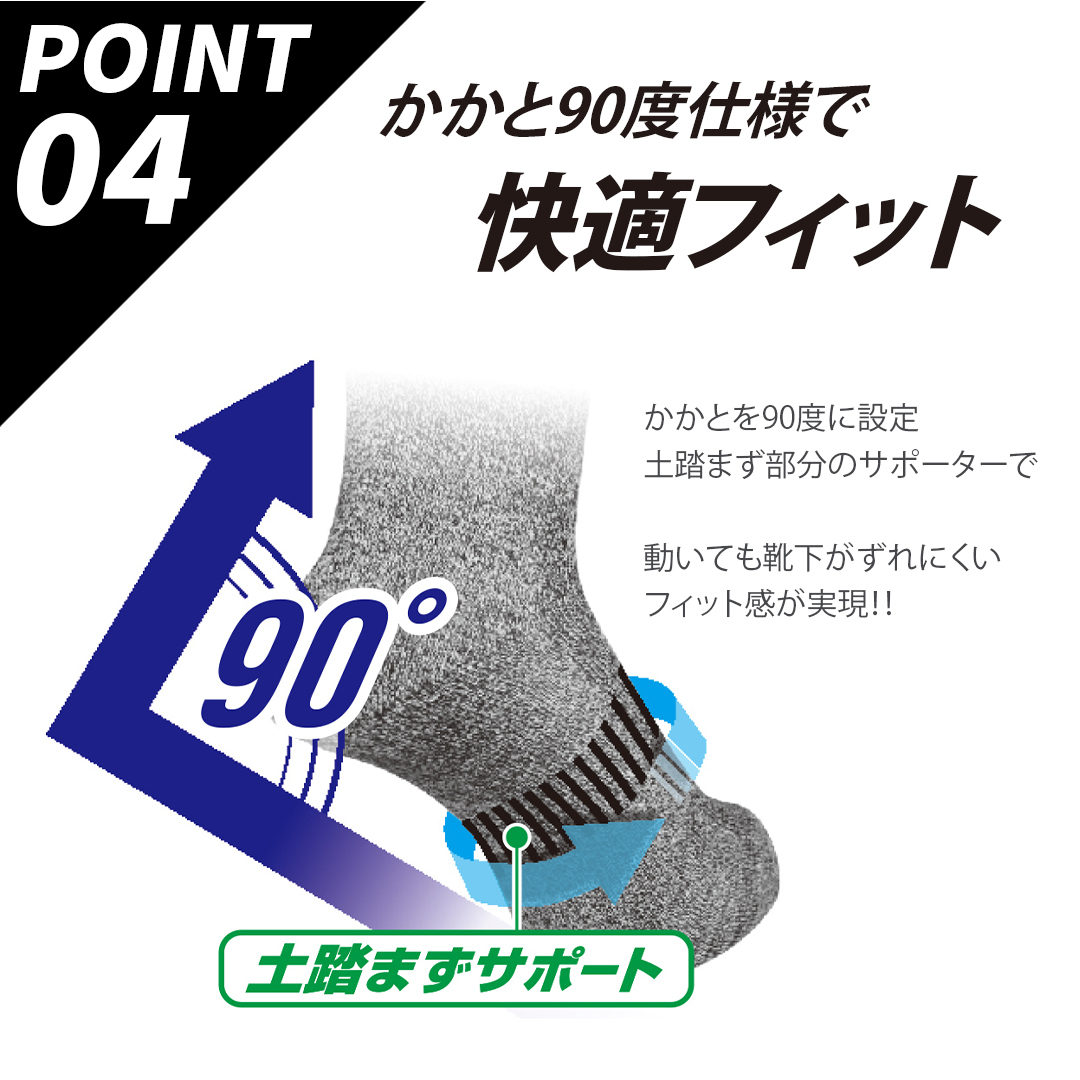 ・ズレにくく、脱げにくい、快適な履き心地が続くクルー丈ソックス