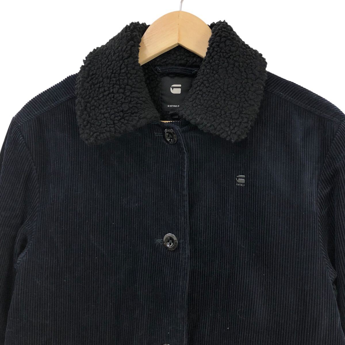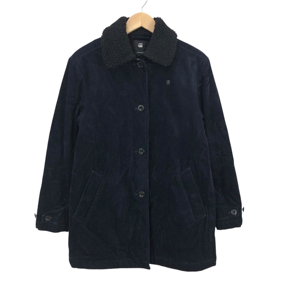 10m666-31 G-STAR RAW ジースターロゥ コーデュロイ ステンカラー 中綿 コート 裏地 ボア 上着 羽織り アウター ネイビー レディース S