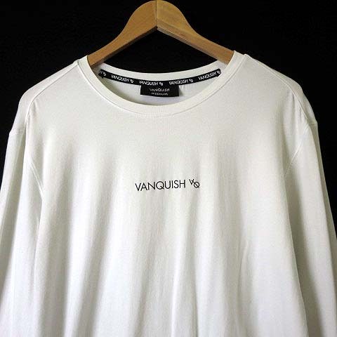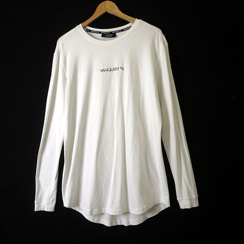 ヴァンキッシュ VANQUISH フィットネス FITNESS Tシャツ ストレッチ ロゴ ラウンドヘム 長袖 M 白 ホワイト トレーニング スポーツ