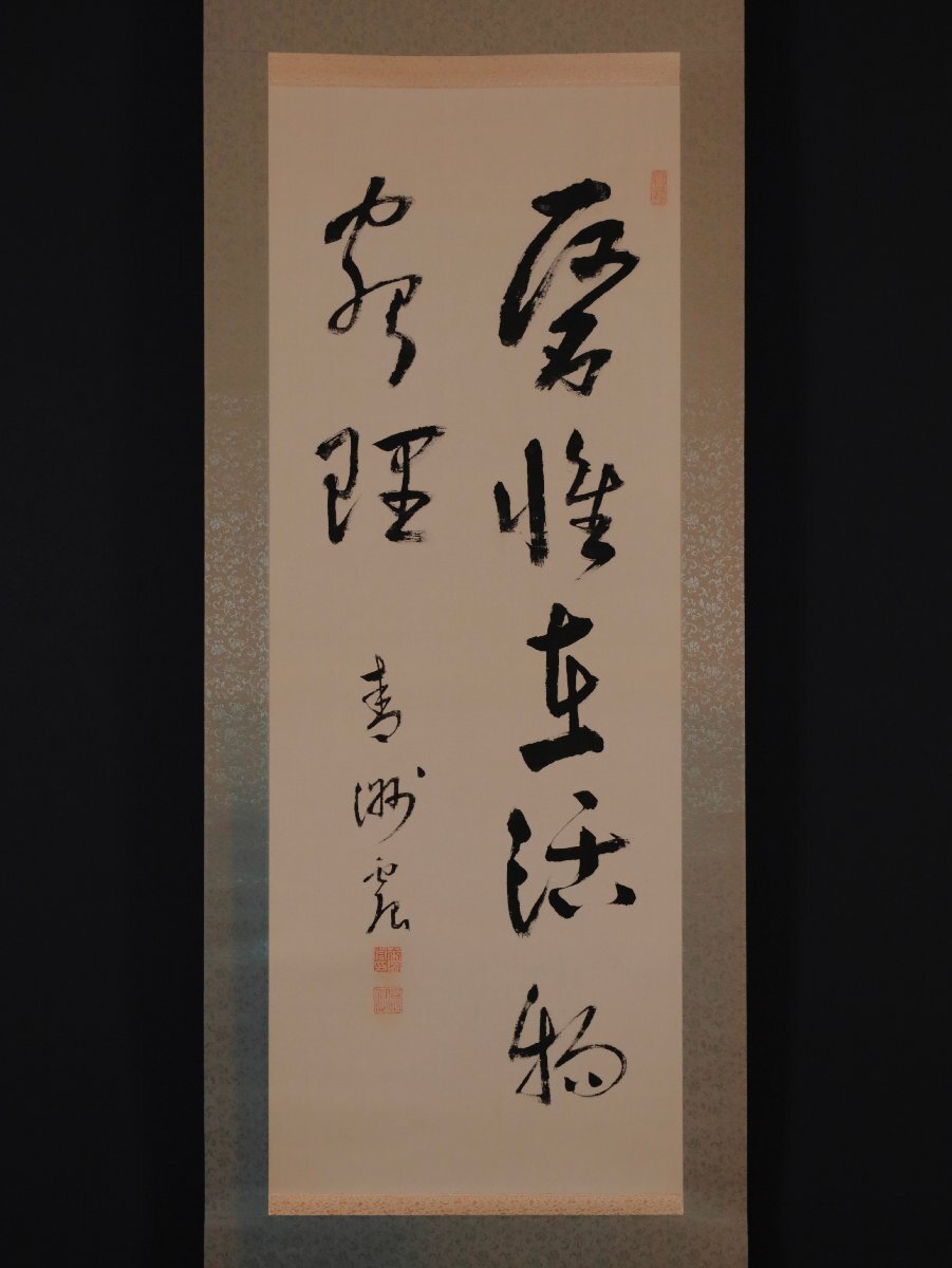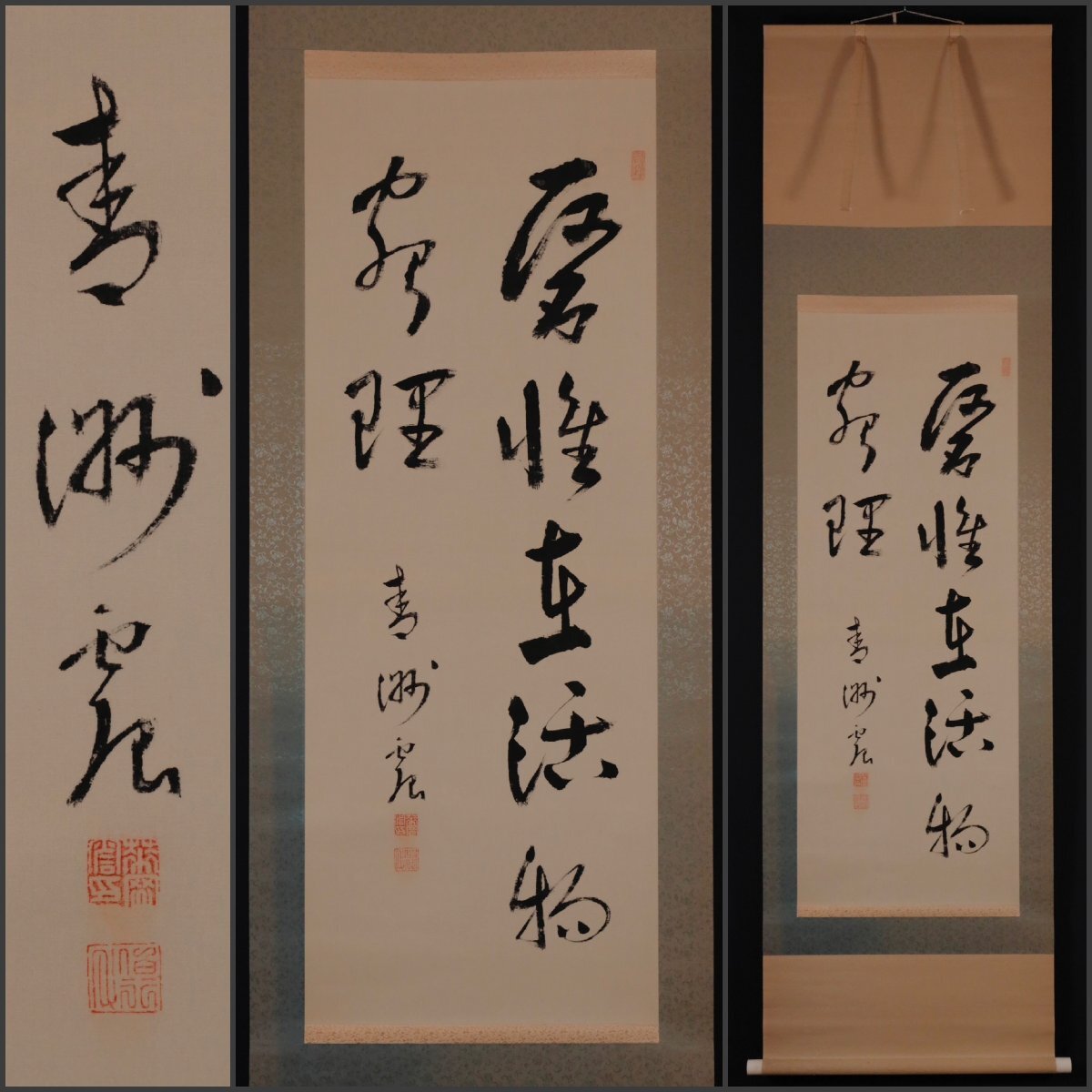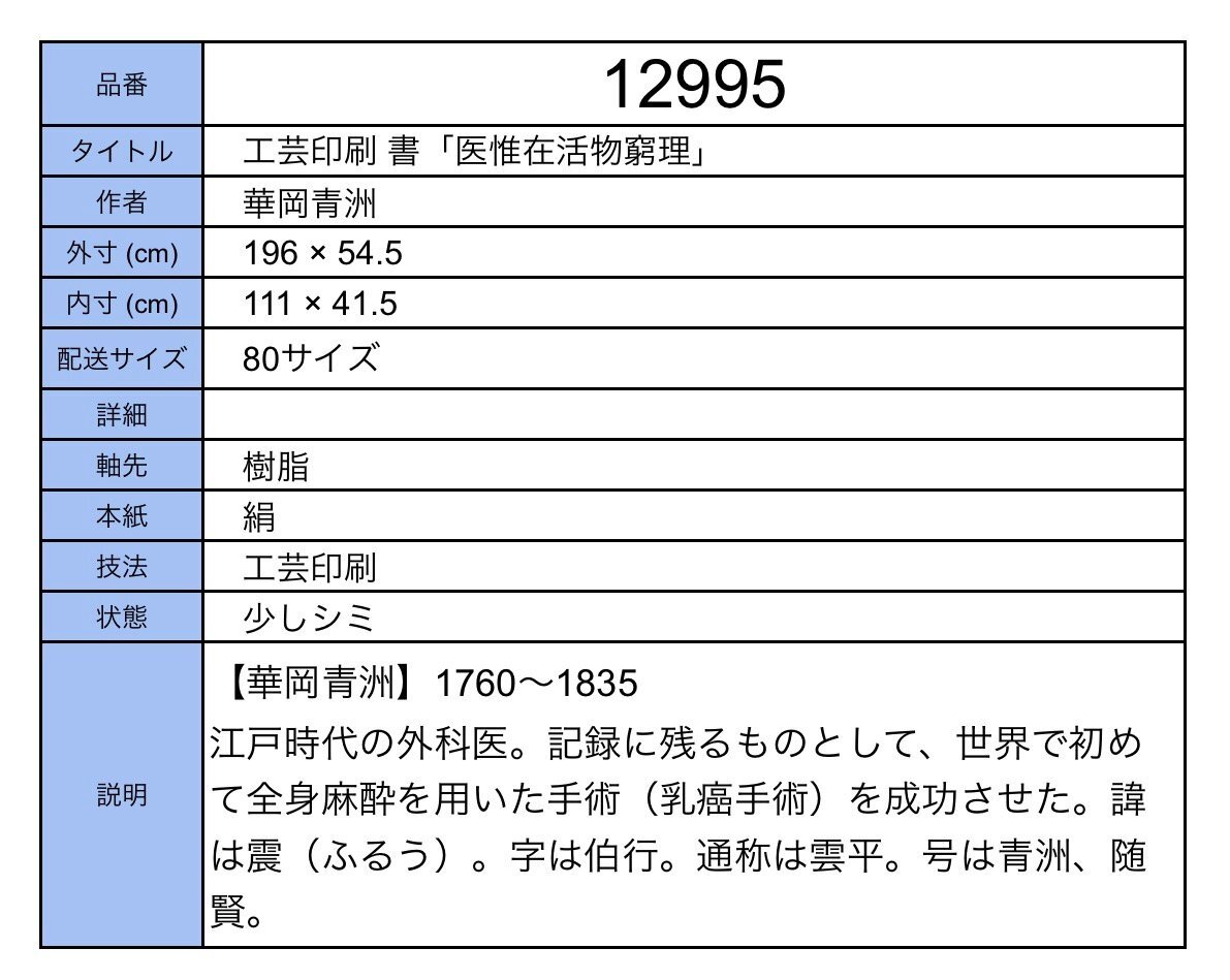 【工芸印刷】吉】12995 華岡青洲 書「医惟在活物窮理」 世界初の全身麻酔手術 外科医 医者 書家 掛軸 掛け軸 骨董品