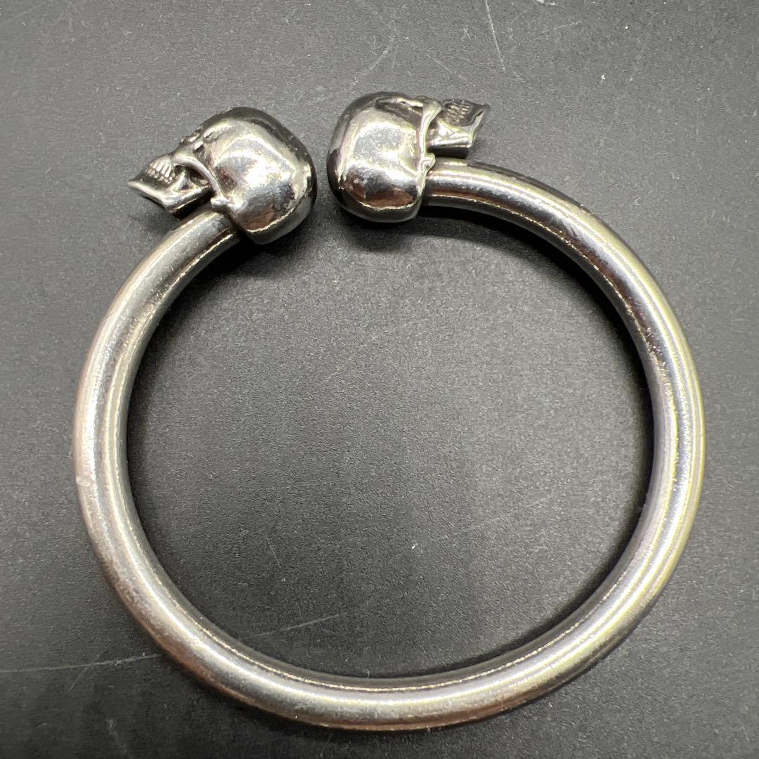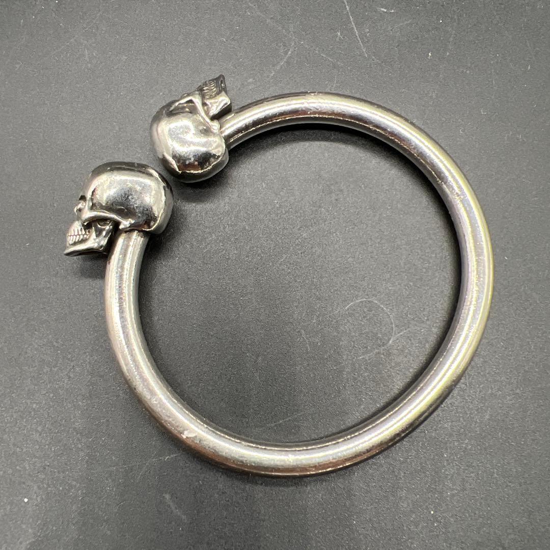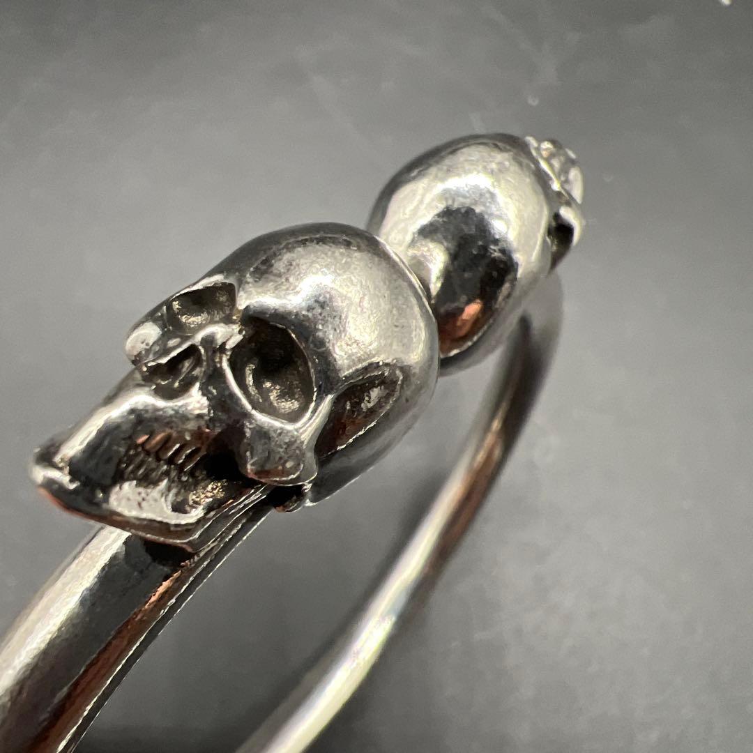 両端にリアルなスカル(骸骨)のデザインが施されたバングルです。