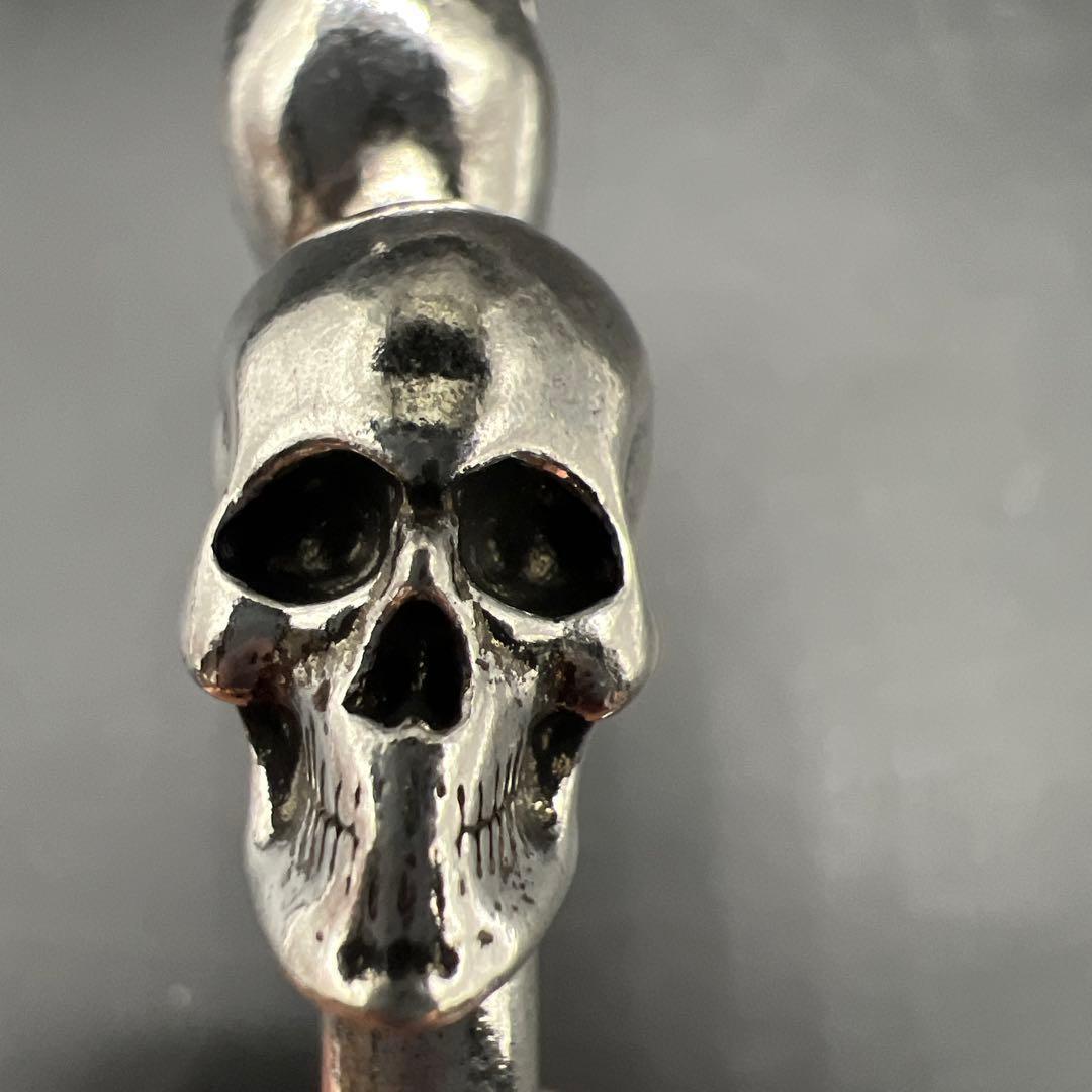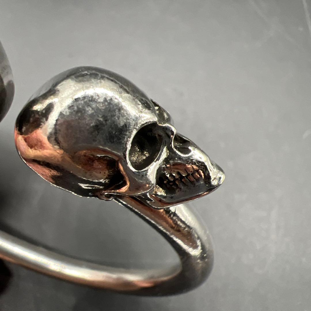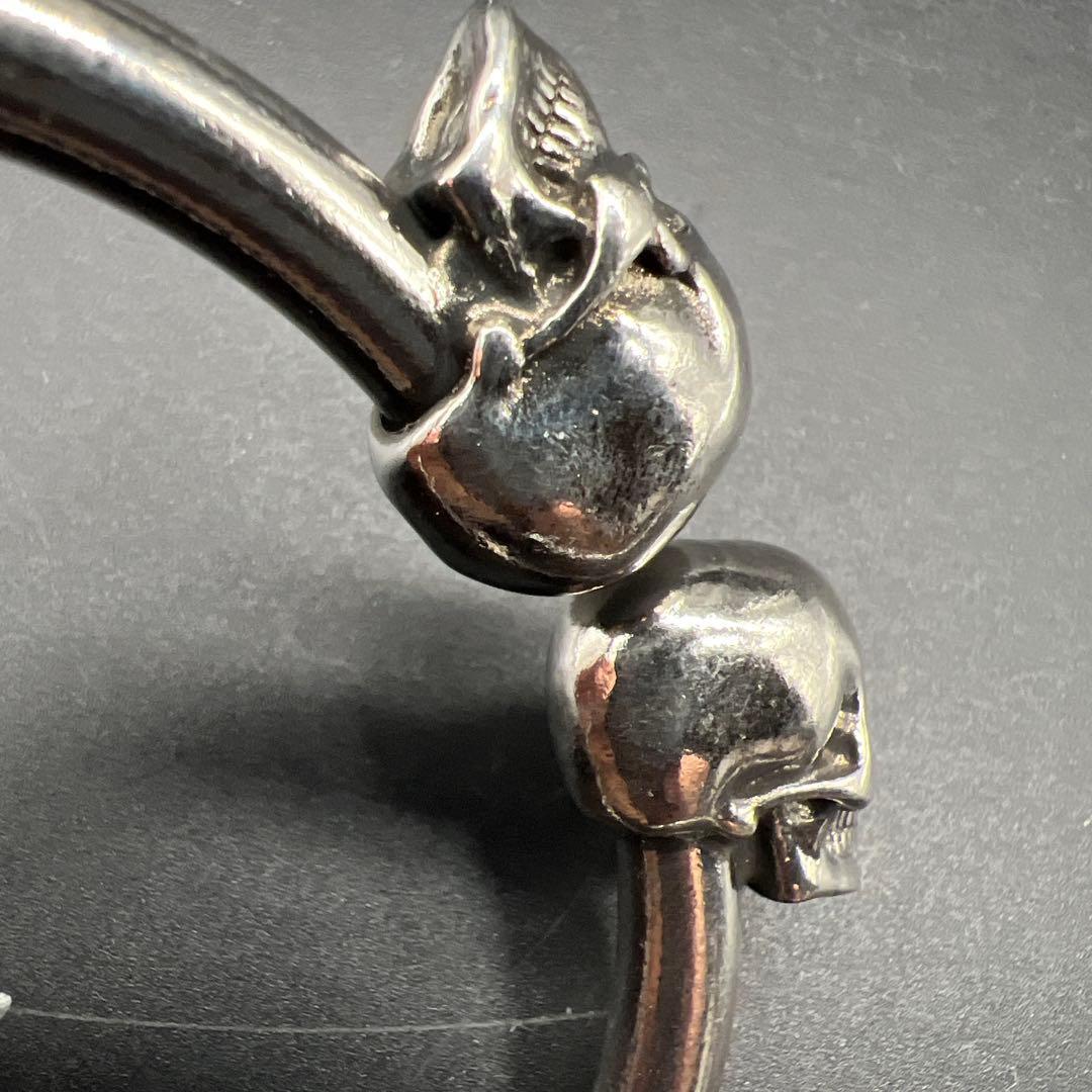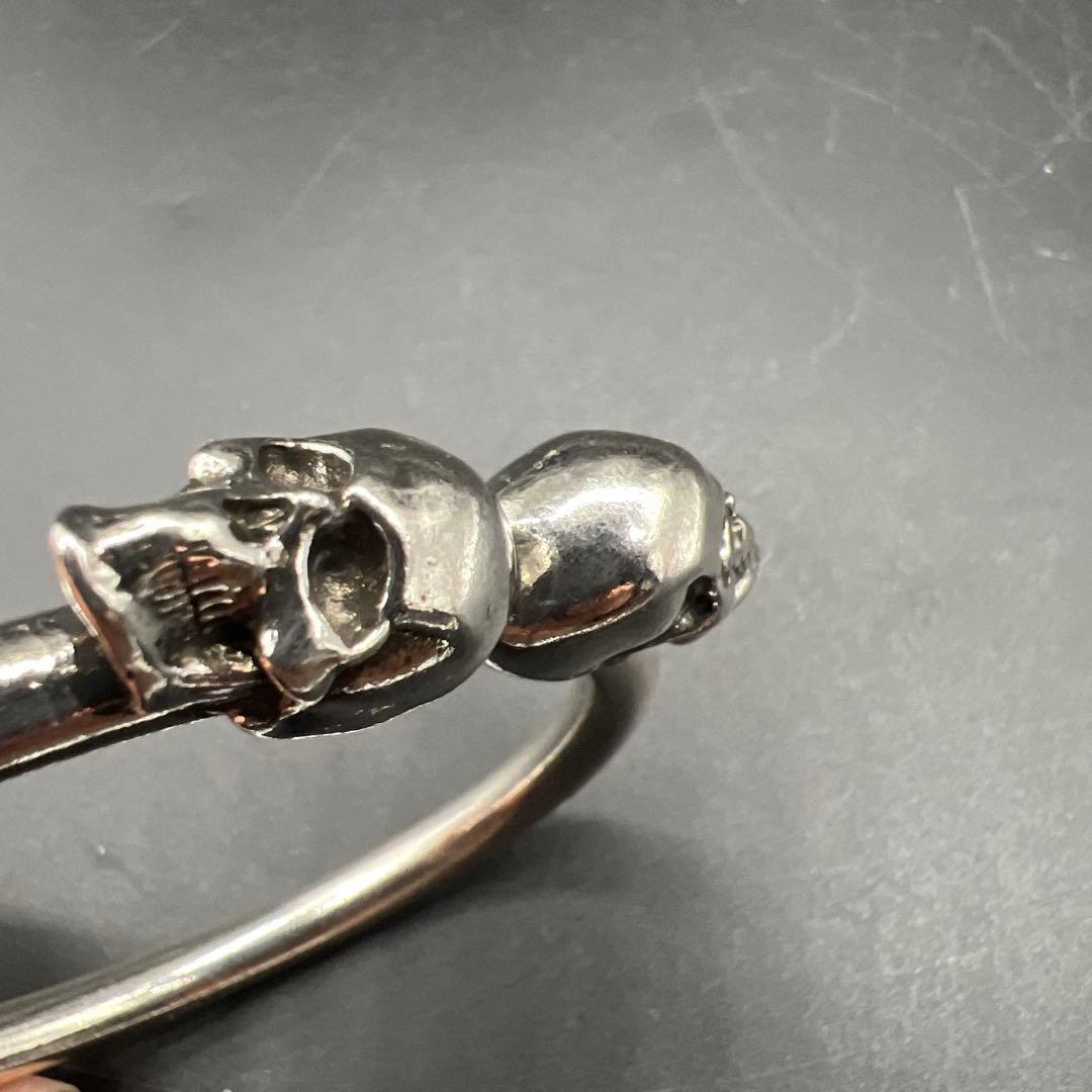 両端にリアルなスカル(骸骨)のデザインが施されたバングルです。
