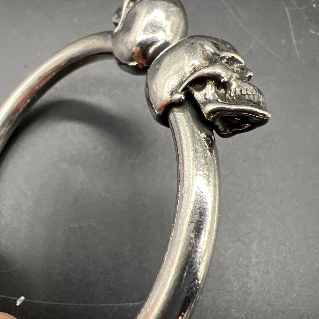 【新品未使用】迫力満点!ツイン スカル バングル ブレスレット シルバー