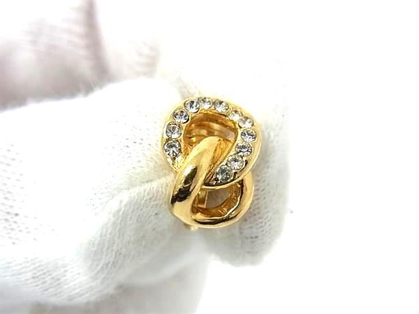 ■美品■ ChristianDior クリスチャンディオール 片耳のみ ラインストーン クリップ式 イヤリング アクセサリー ゴールド系 DI4280