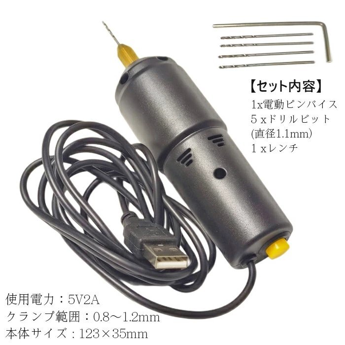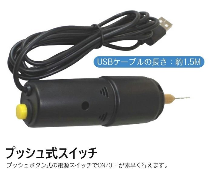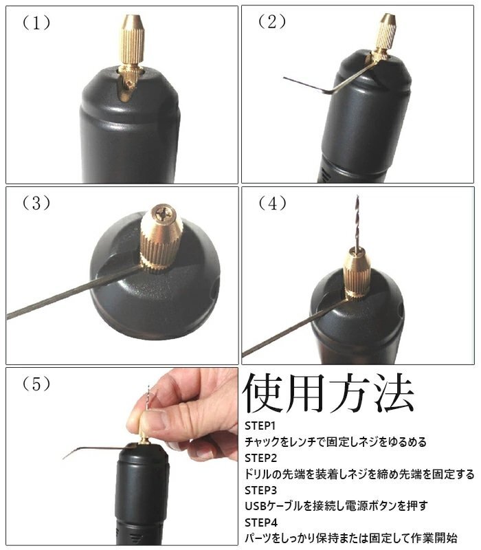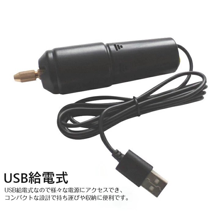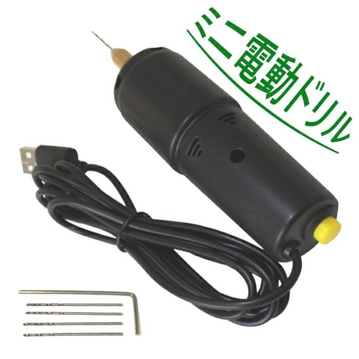 ミニドリル 電動ドリル 小型電動ドリル USB給電 穴あけ DIY 細工 ペン型 携帯便利 DIY 簡単作業 予備ドリル針5本付き☆1点